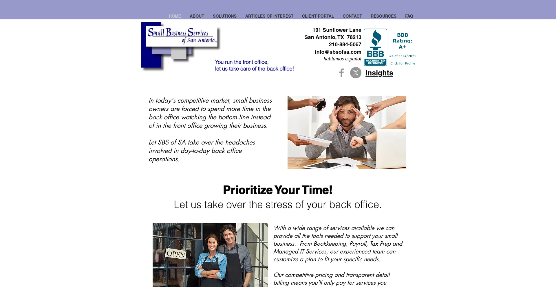 Running a small business is stressful. Let SBS of SA relieve your stress of back office tasks - including bookkeeping, payroll, tax and computer services