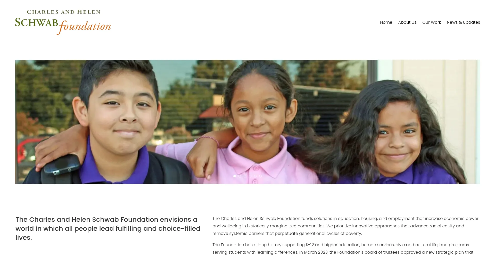 The Charles and Helen Schwab Foundation believes that every person has the potential and deserves the opportunity to lead a happy and productive life.