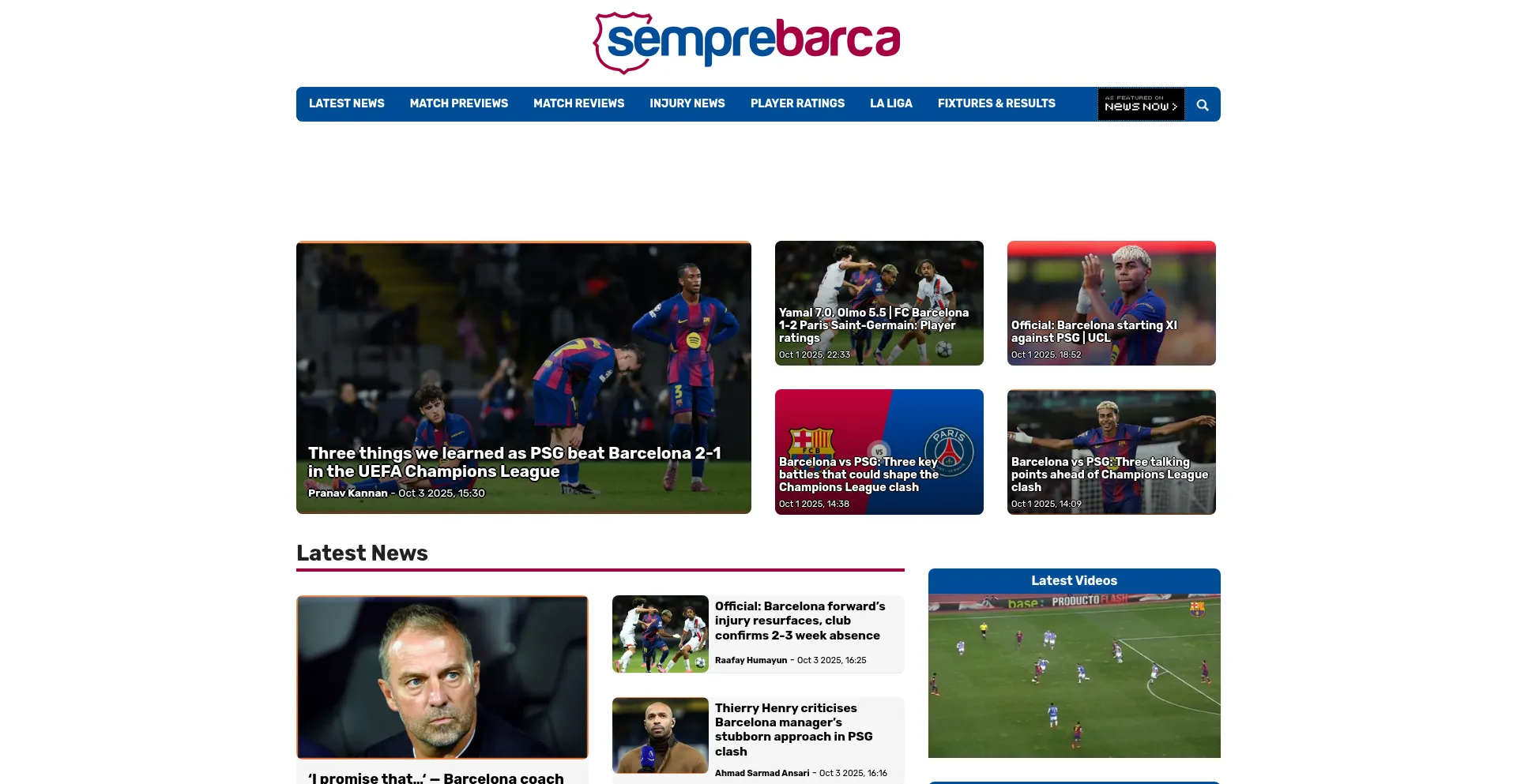 Sempre Barca is the best independent source for the latest news, match previews, reviews, stats, and transfer updates from FC Barcelona.