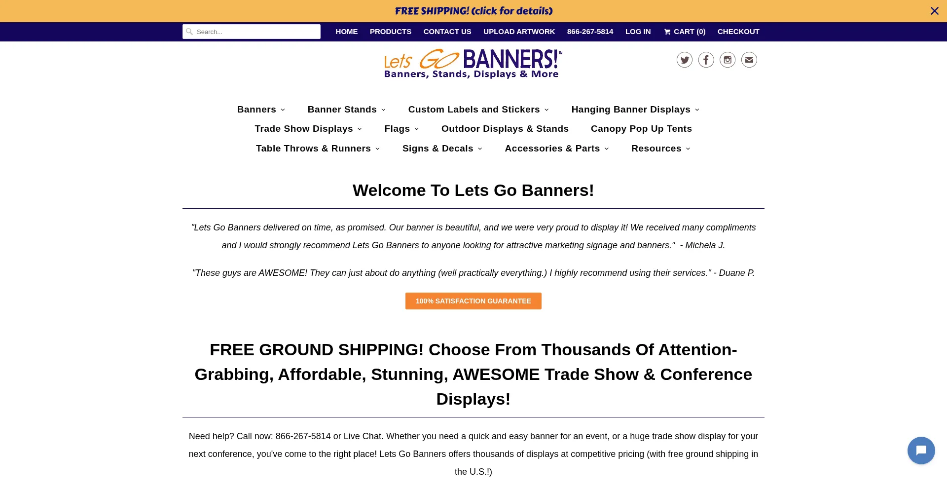 Lets Go Banners offers a huge selection of vinyl banners, banner stands, trade show displays, and sign & banner graphics. Free ground shipping in US.