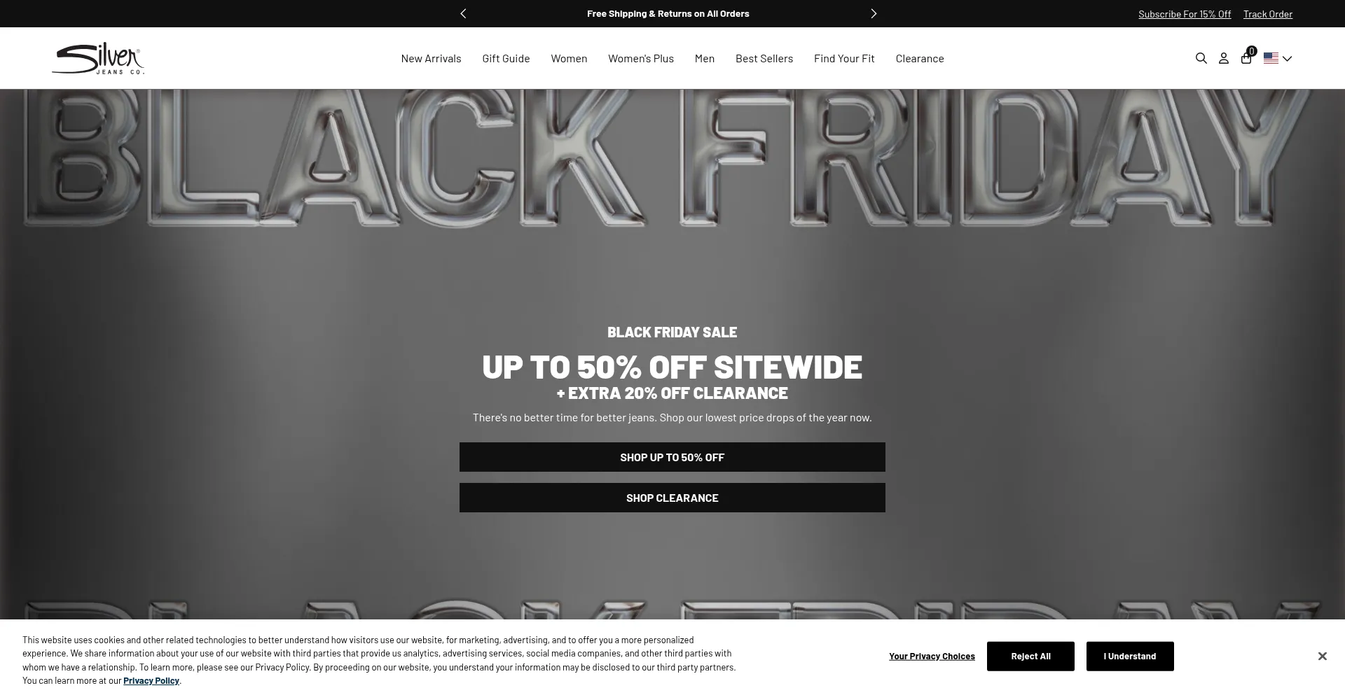 O site implementa mecanismos de consentimento de cookies em conformidade com regulamentações de privacidade como GDPR ou CCPA. Isso demonstra que silverjeans.com adere a padrões de proteção de dados e fornece aos usuários controle sobre práticas de coleta de dados pessoais.