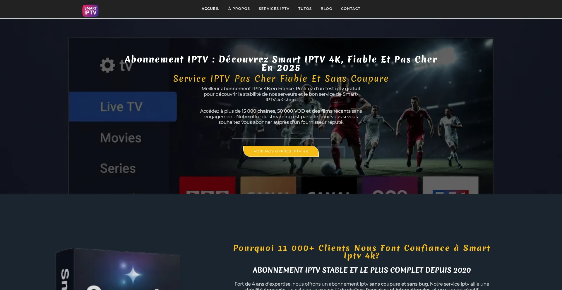 Abonnement IPTV 4K dès 19,99€ | Smart IPTV 4K Fiable 2025