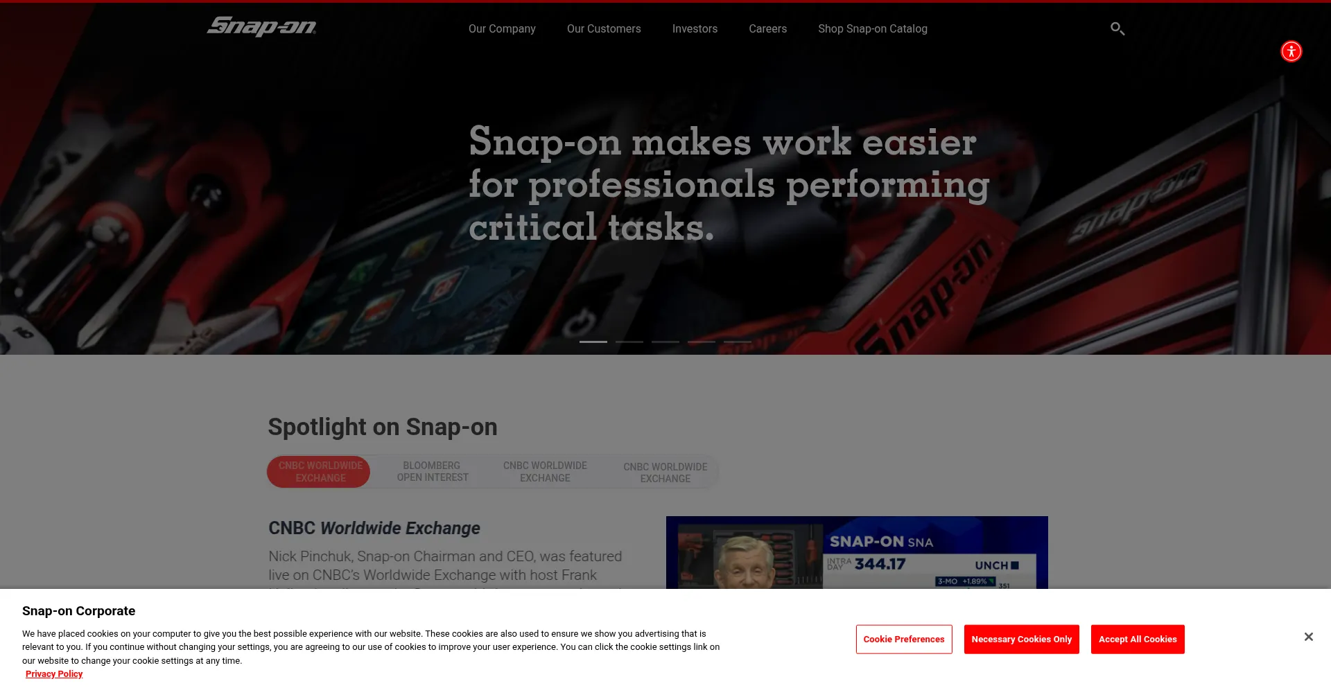 O site implementa mecanismos de consentimento de cookies em conformidade com regulamentações de privacidade como GDPR ou CCPA. Isso demonstra que snapon.com adere a padrões de proteção de dados e fornece aos usuários controle sobre práticas de coleta de dados pessoais.