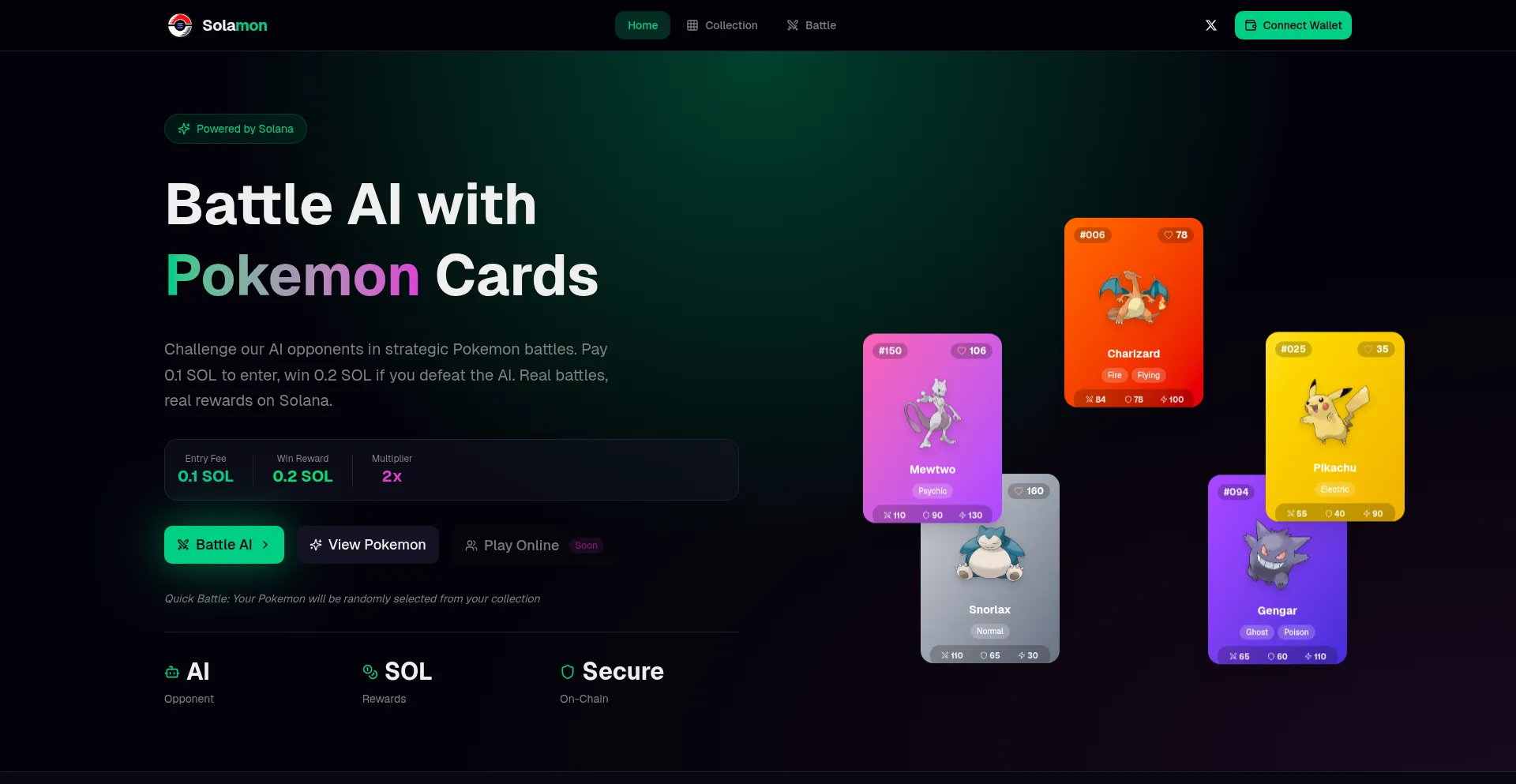 The ultimate Pokemon card battle game on Solana blockchain. Collect, trade, and battle with legendary monsters.