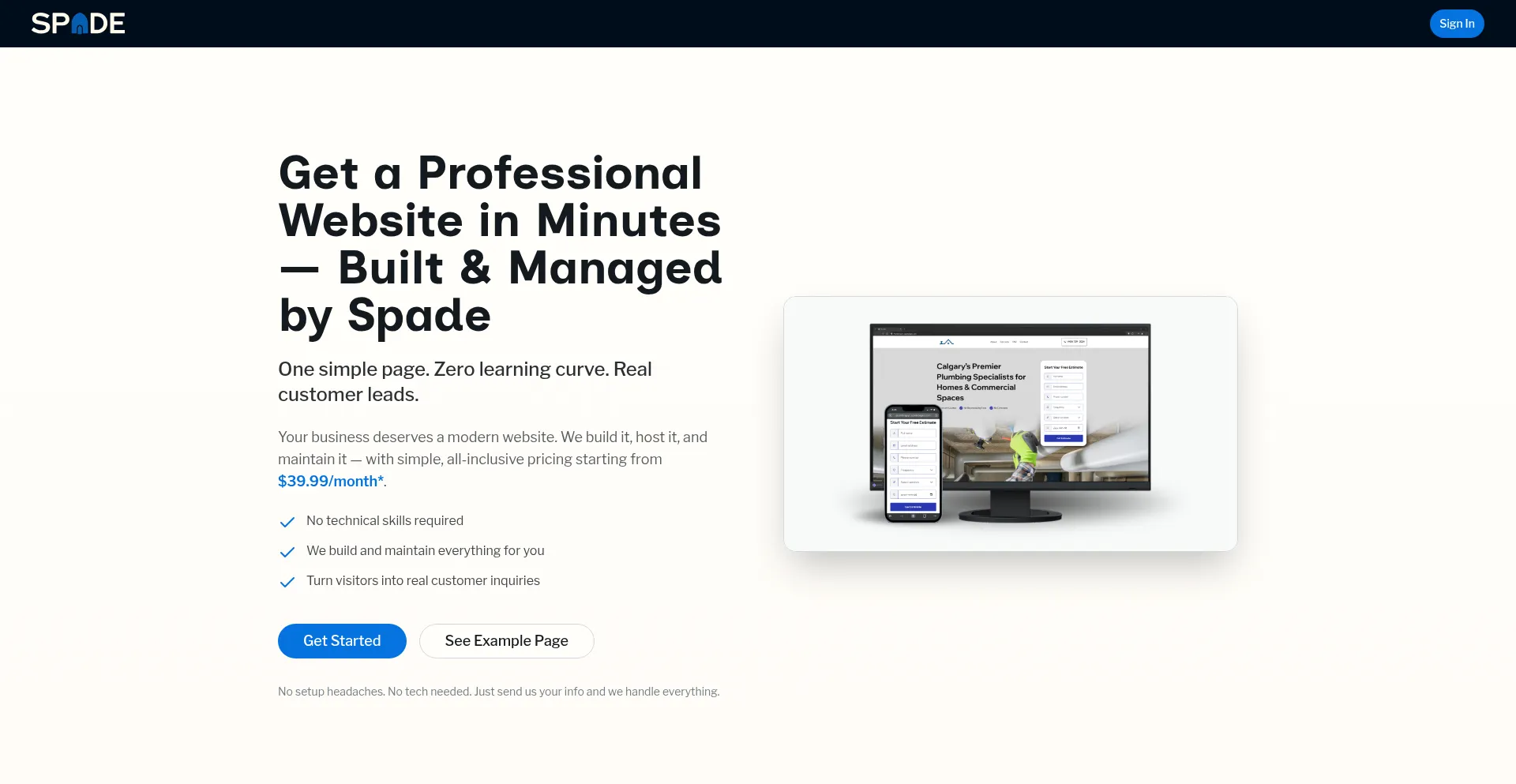 Spade Pages builds, hosts, and maintains a professional website for your home service business. Get a modern, done-for-you provider landing page from $39.99/month* (CAD).