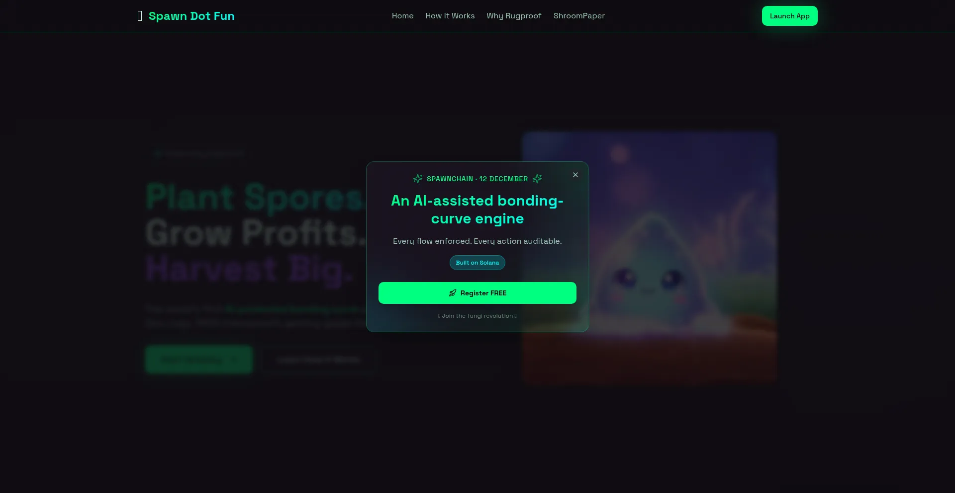 SpawnChain: The world's first AI-protected on-chain bonding curve liquidity chain. Plant spores, grow liquidity, harvest big. Zero rugs, 100% transparent on Solana.