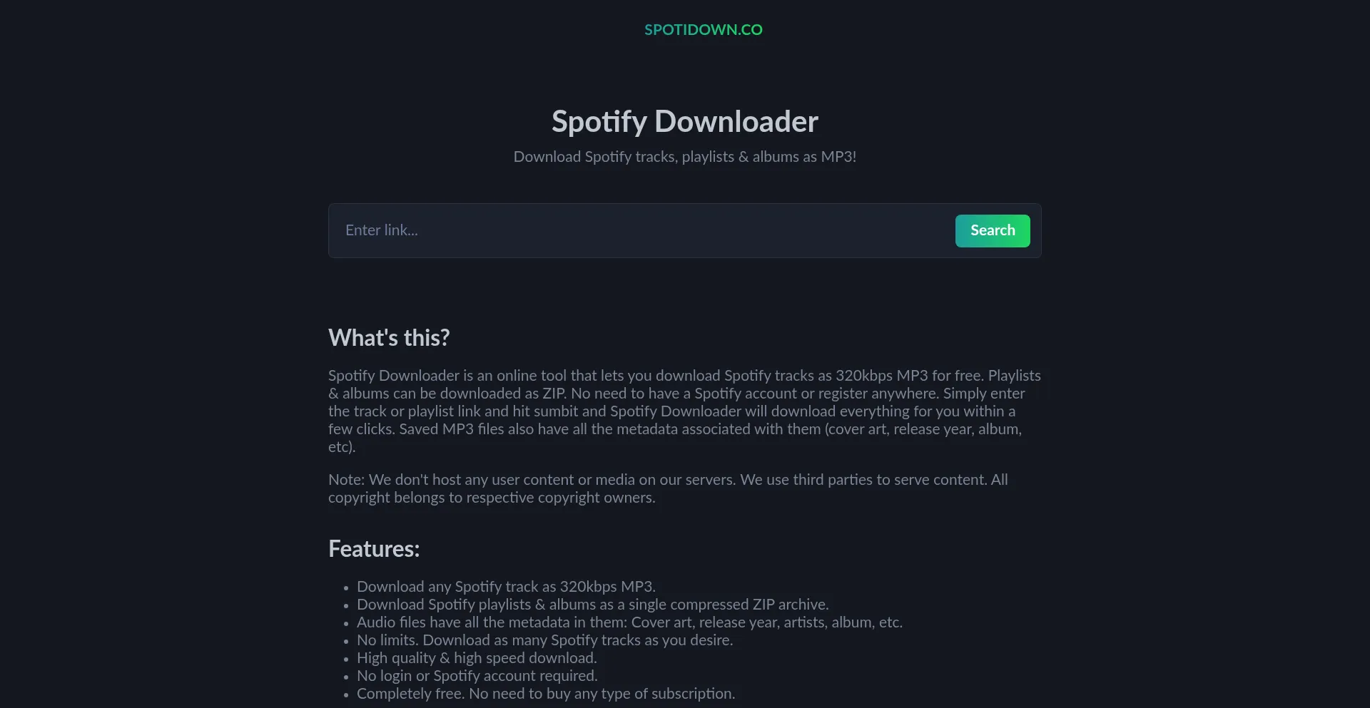 Download Spotify songs as 320kbps MP3 for free. Download Spotify playlists & albums as a single compressed ZIP archive.