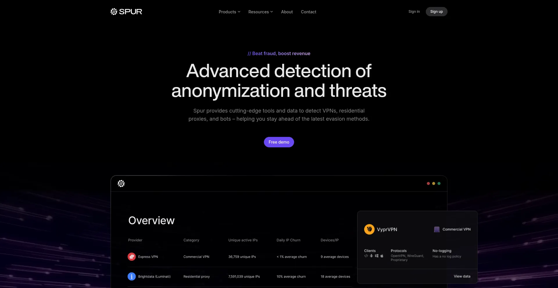 Spur provides cutting-edge tools and data to detect VPNs, residential proxies, and bots - helping you stay ahead of the latest evasion methods.