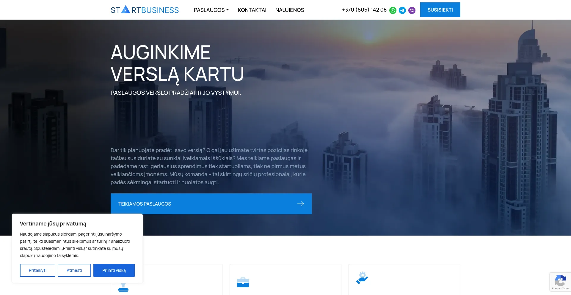 O site implementa mecanismos de consentimento de cookies em conformidade com regulamentações de privacidade como GDPR ou CCPA. Isso demonstra que startbusiness.lt adere a padrões de proteção de dados e fornece aos usuários controle sobre práticas de coleta de dados pessoais.