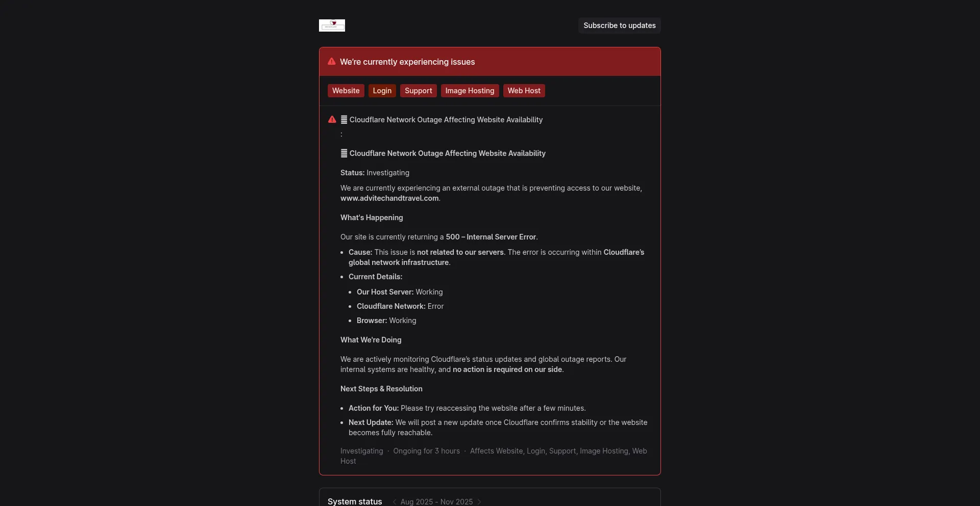 status.advitechandtravel.com vitals.vercel-insights.com incident.io www.advitechandtravel.com
