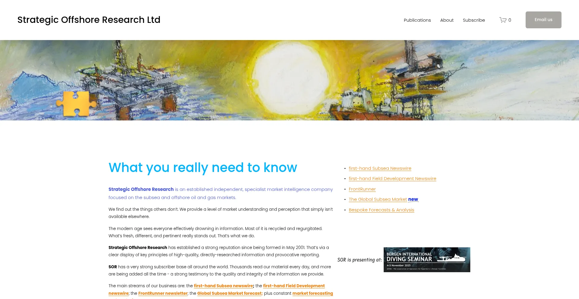 Strategic Offshore Research is an established independent, specialist market intelligence company focused on the subsea and offshore oil and gas markets.