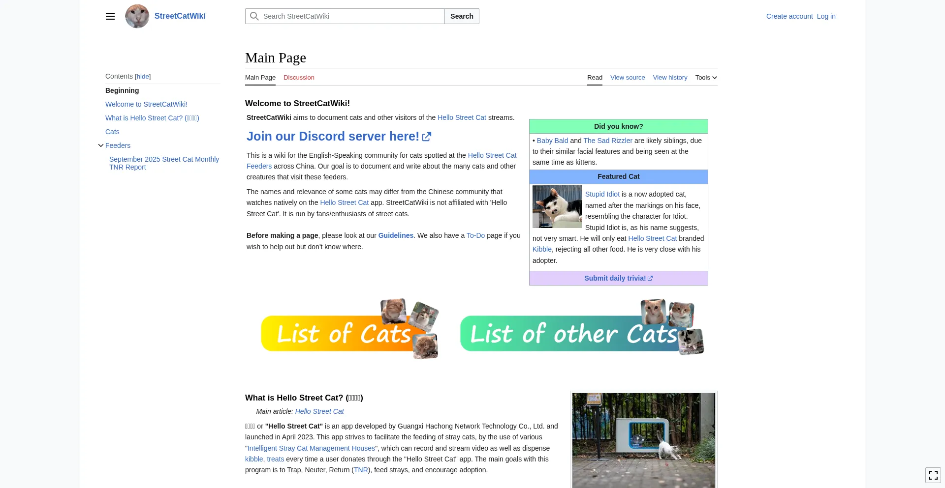 static.cloudflareinsights.com www.mediawiki.org m.streetcat.wiki docs.google.com meow.camera discord.gg creativecommons.org streetcat.wiki