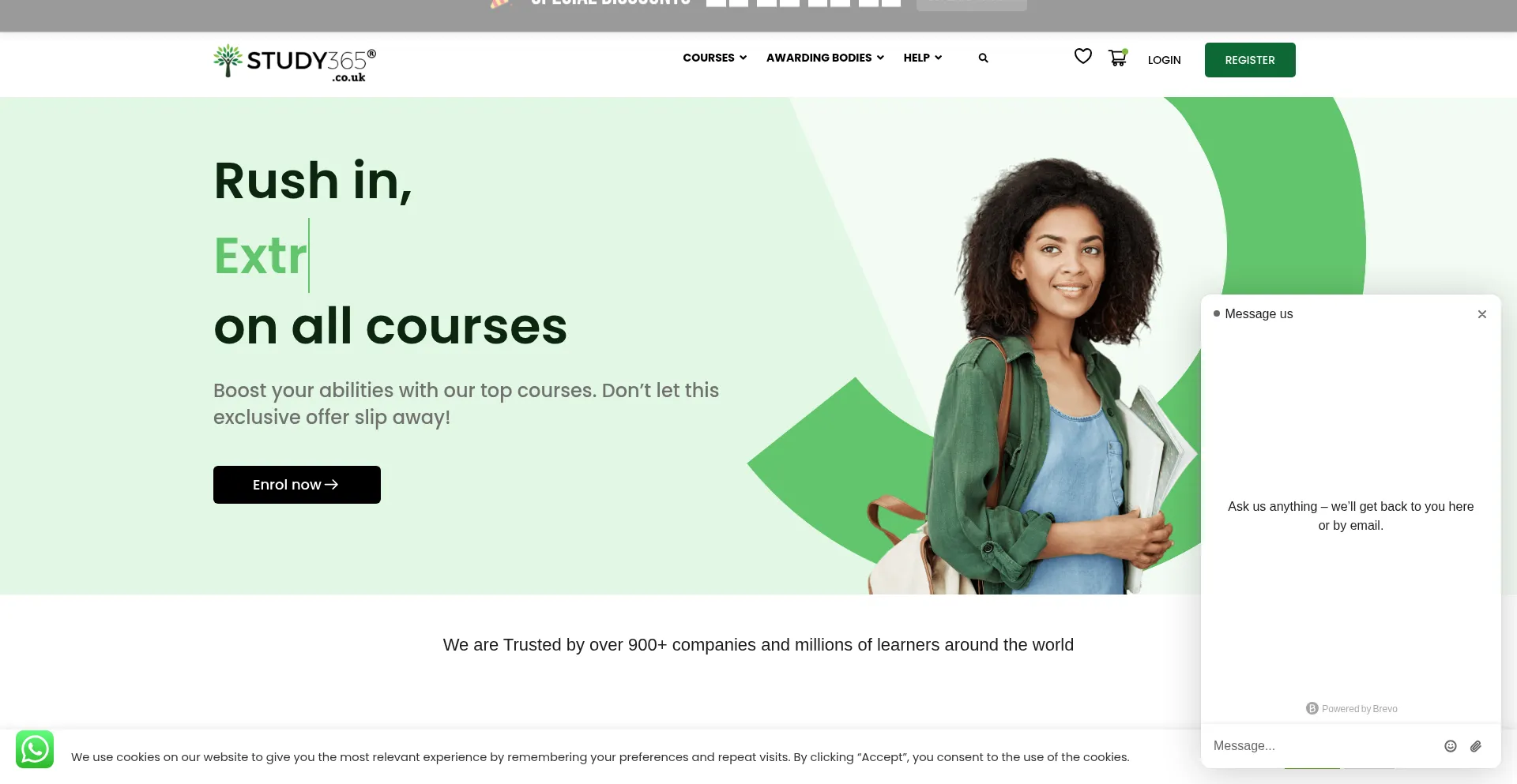 O site implementa mecanismos de consentimento de cookies em conformidade com regulamentações de privacidade como GDPR ou CCPA. Isso demonstra que study365.co.uk adere a padrões de proteção de dados e fornece aos usuários controle sobre práticas de coleta de dados pessoais.