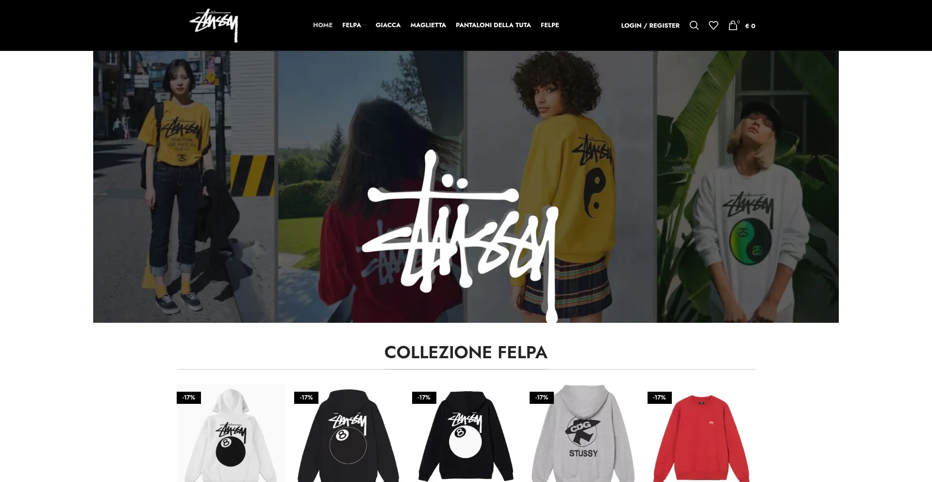 Negozio Ufficiale di Abbigliamento Stussy Italia. Acquista giubbotti, tute, felpe e altro. Consegna veloce e assistenza clienti 24/7.
