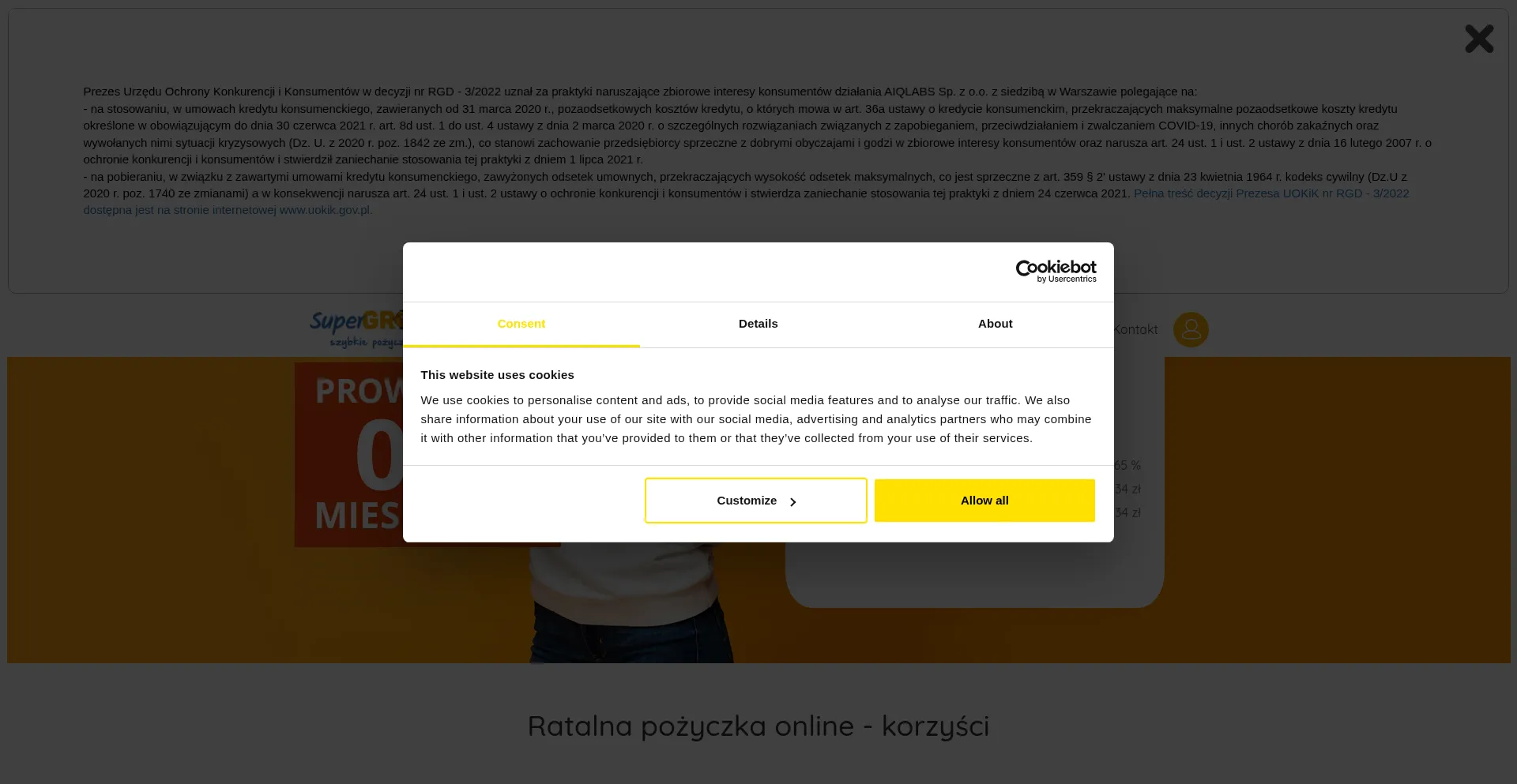 O site implementa mecanismos de consentimento de cookies em conformidade com regulamentações de privacidade como GDPR ou CCPA. Isso demonstra que supergrosz.pl adere a padrões de proteção de dados e fornece aos usuários controle sobre práticas de coleta de dados pessoais.