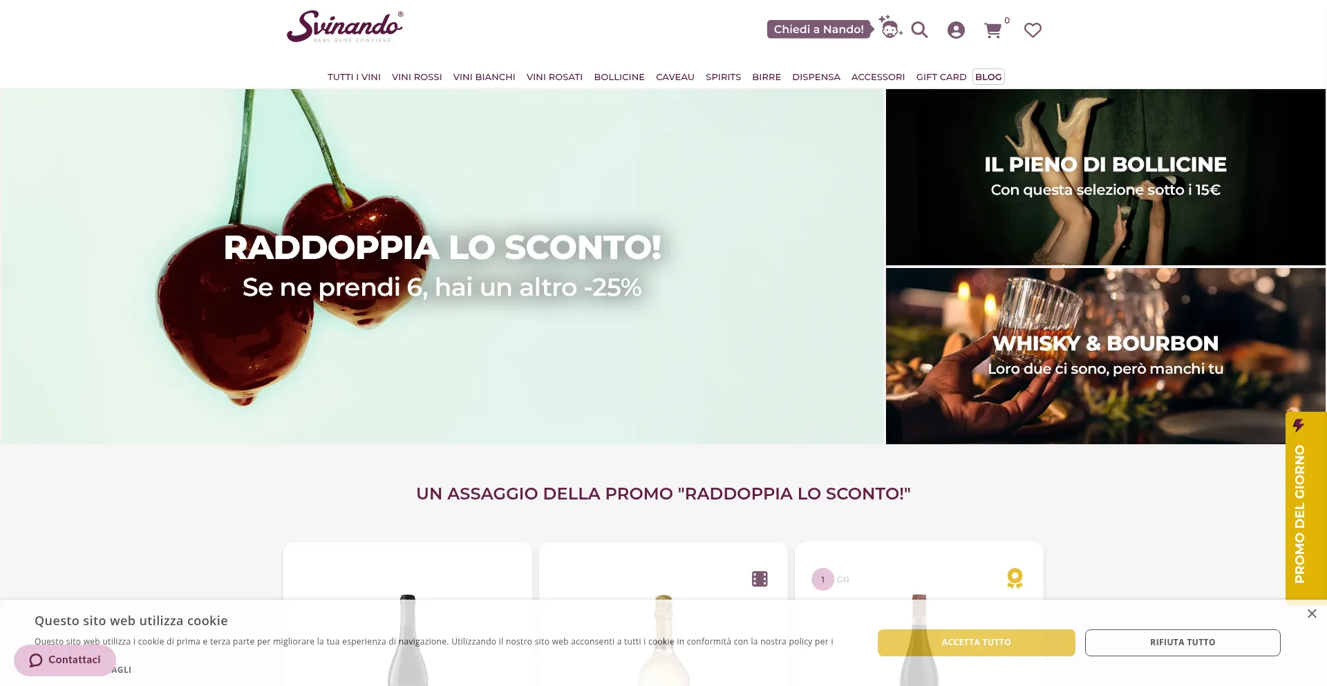 Svinando è un sito dedicato alla vendita online di vino di qualità. Acquisto dei migliori vini, ai prezzi migliori, selezionati per te.