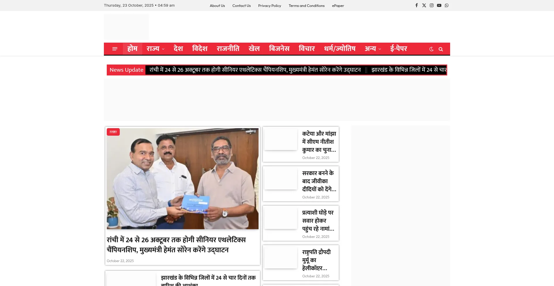 Swadesh Today ( स्वदेश टुडे ) hindi news in website. mostly top categories is jharkhand news, ranchi news, taja samachar, news in hindi.