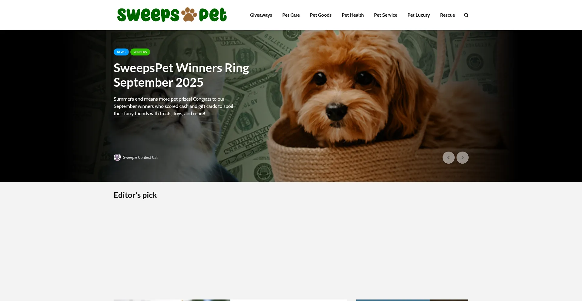 Sweeps.Pet - Home for Pet-related giveaways and sweepstakes
