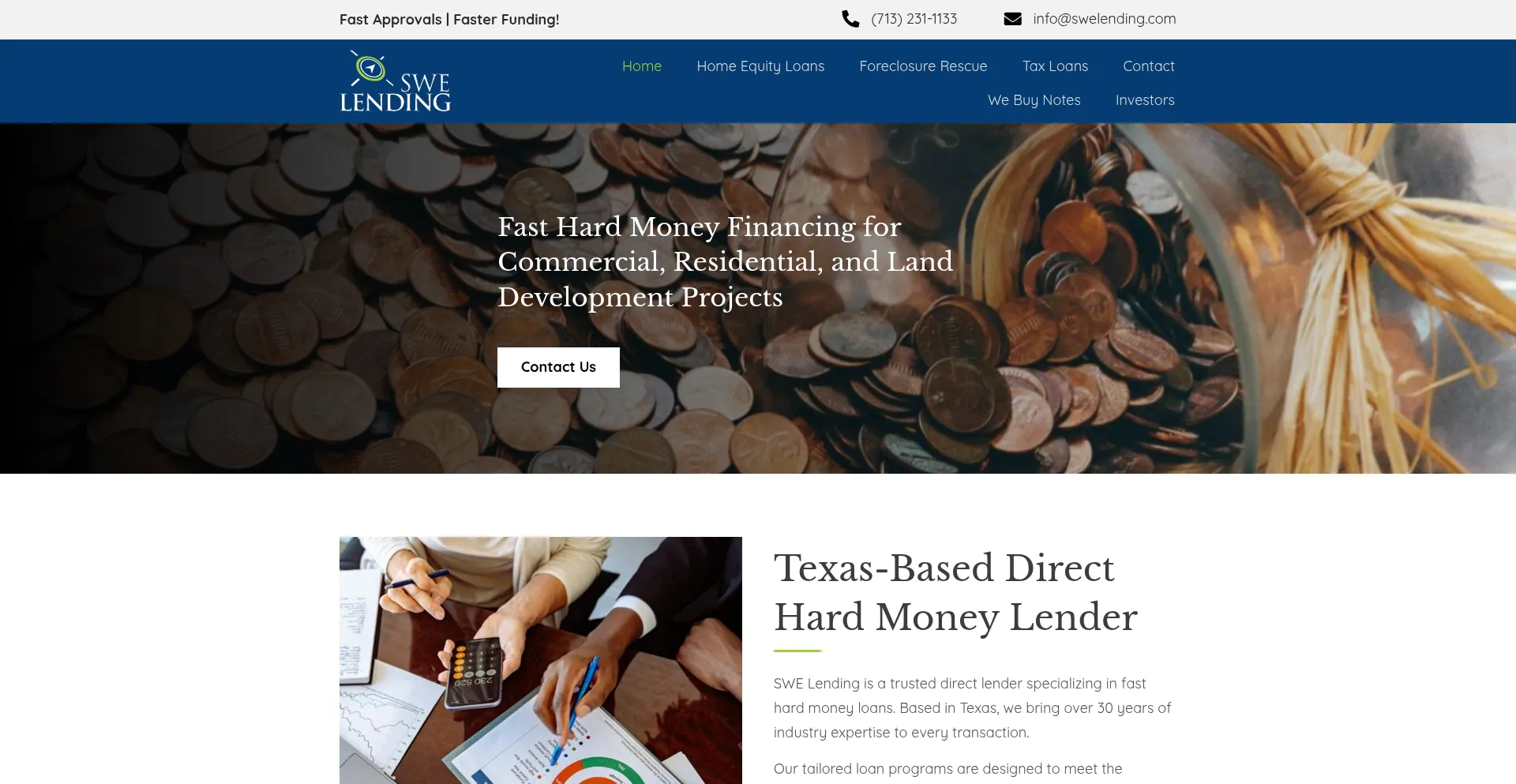 SWE Lending is a direct lender for fast hard money loans. Located in Texas, we have more than thirty years of experience in the industry. Our loan programs are aimed at meeting ...