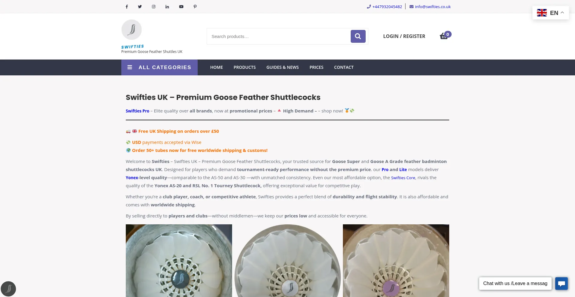 Shop Swifties UK – Premium Goose Feather Shuttlecocks. Best AS-50/AS-30 alternatives, Pro & Core at £22-£35. UK delivery! swifties.co.uk!