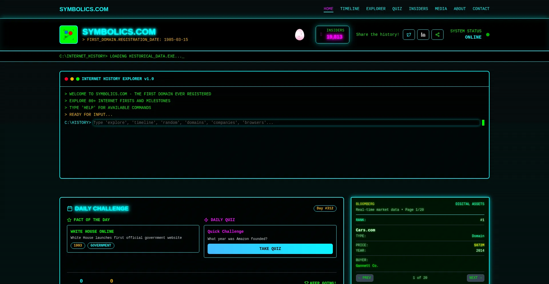 Explore internet history through Symbolics.com, the world's first registered domain name (March 15, 1985). Discover interactive timelines, facts, and milestones that shaped the ...