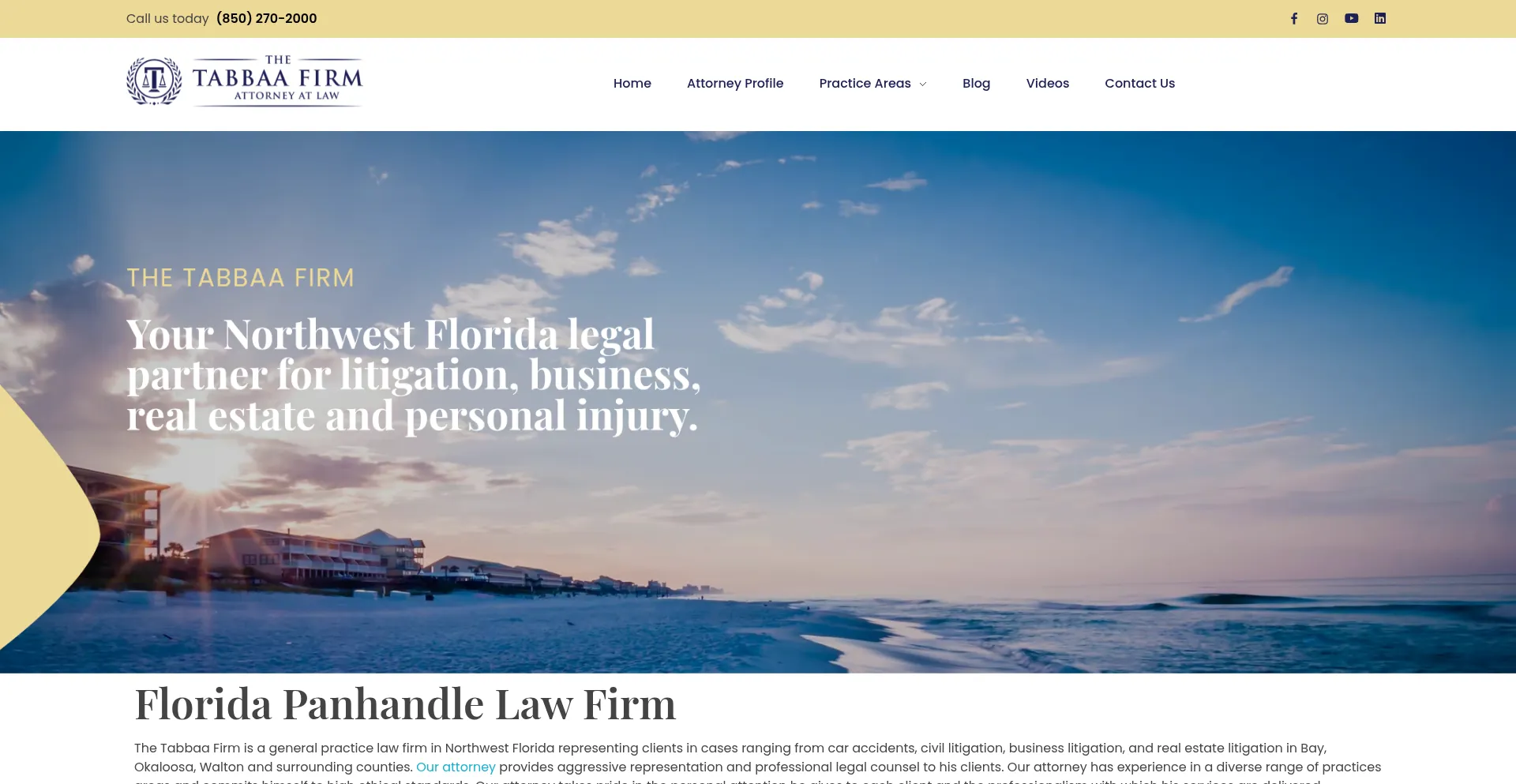 The Tabbaa Firm is a Florida Panhandle law firm for civil litigation, car accidents, business, and real estate litigation serving all Northwest Florida.