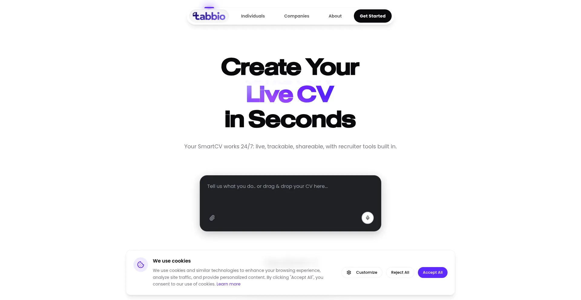 Build a Smart CV in one link. Companies can post jobs and hire free with career pages. Join Tabbio beta today and connect talent with opportunities.