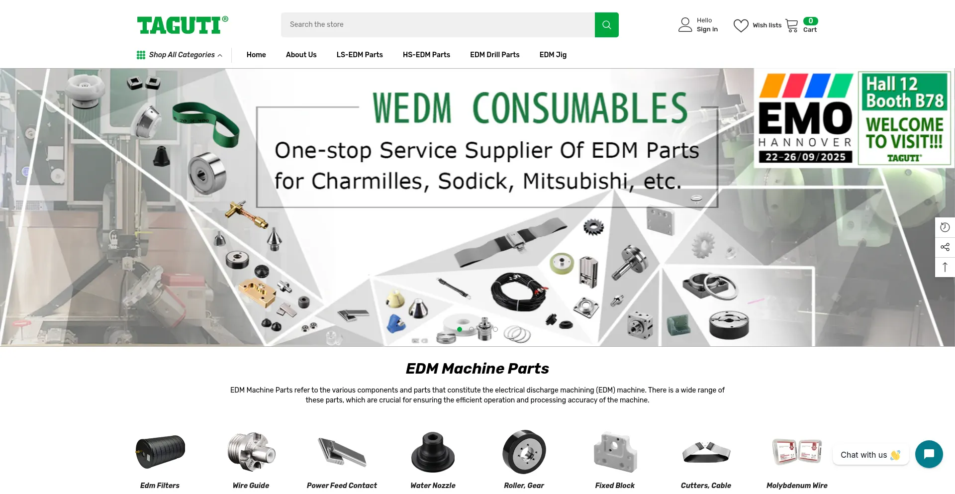 TAGUTI Store offers EDM parts and consumables for major brands of wire cut EDM machines such as Agie Charmilles, Mitsubishi, Sodick, Fanuc, Makino and AccuteX. We supply high-qu...