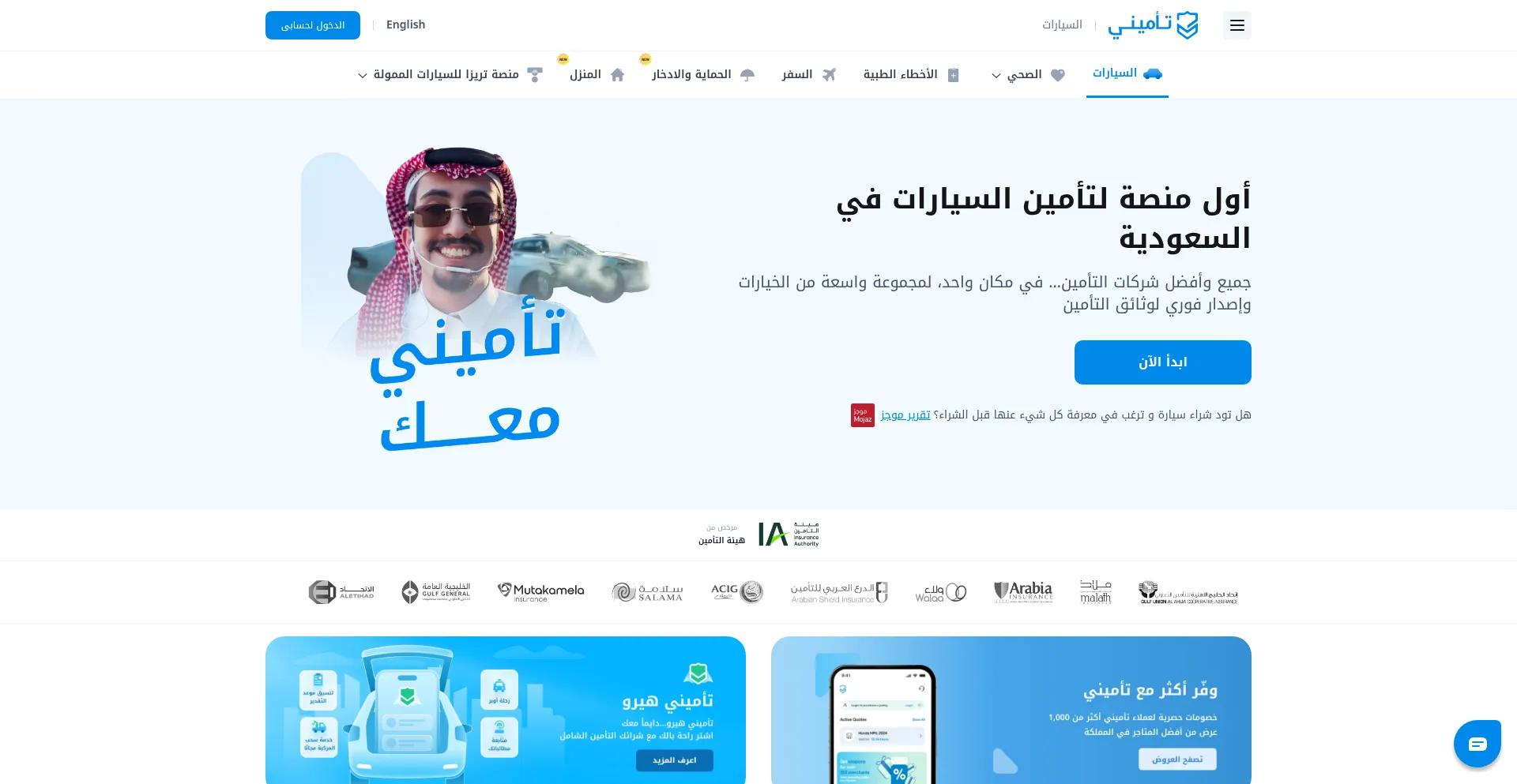 تأميني المنصة الأولى لمقارنة أسعار تأمين المركبات والطبي وسفر وأخطاء طبية اونلاين في السعودية