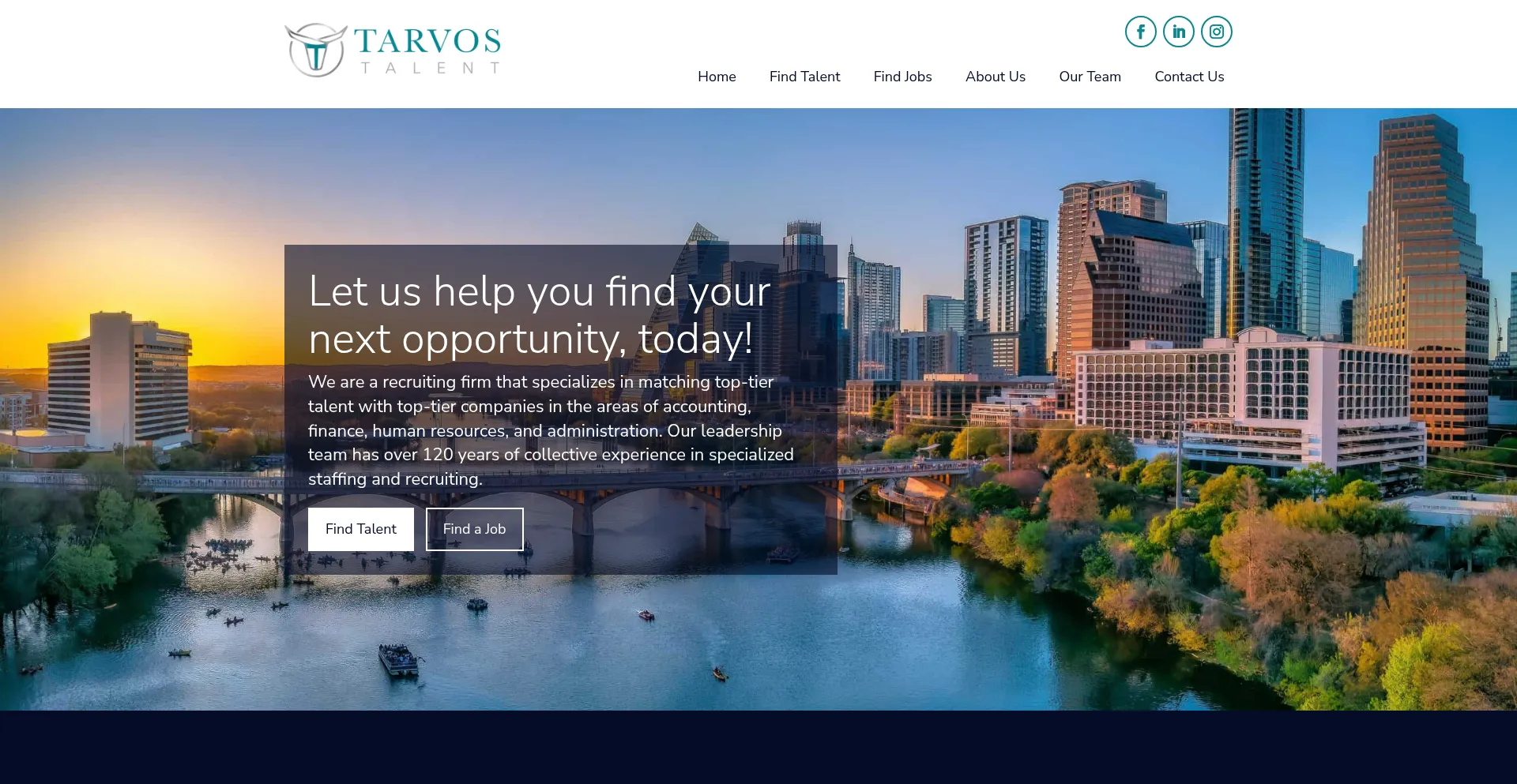 We are a recruiting firm that specializes in matching top-tier talent with top-tier companies in the areas of accounting, finance, human resources, and administration.