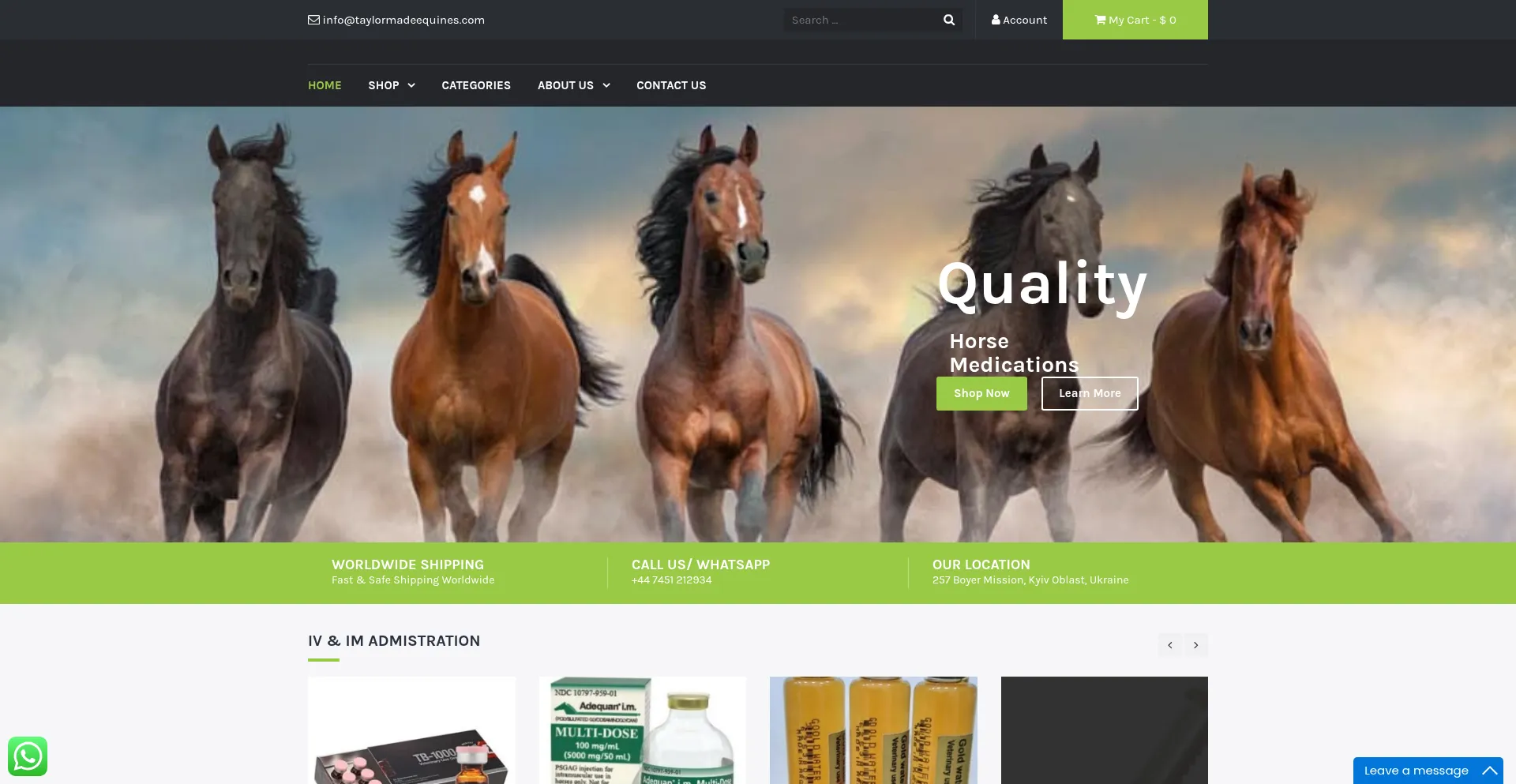 Taylor Madeequines is the first online store designed for competing equestrians and run by sport horse veterinarians. Find the best medications for horses