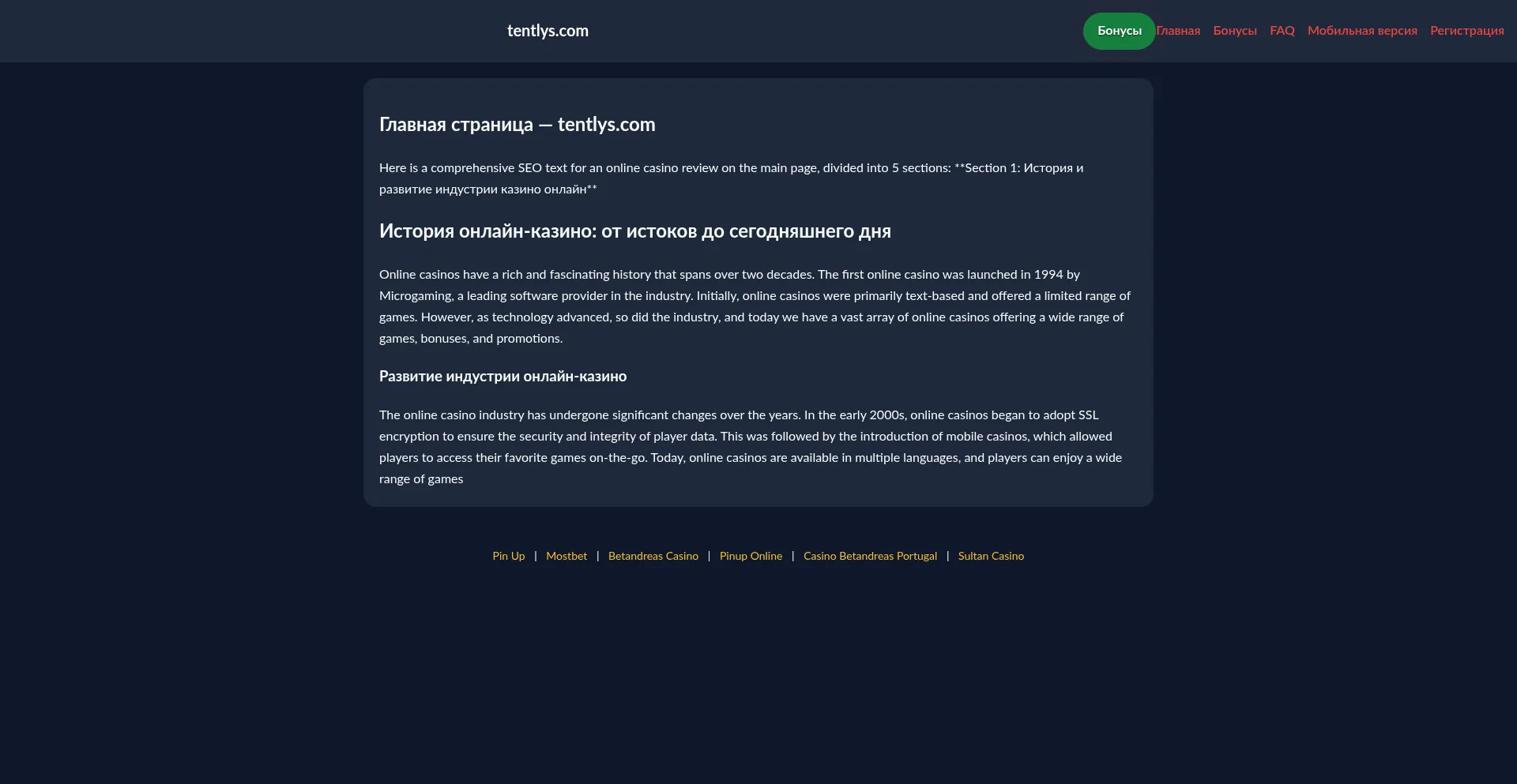 Казино tentlys.com — бонусы, мобильная версия, регистрация и ответы на вопросы.