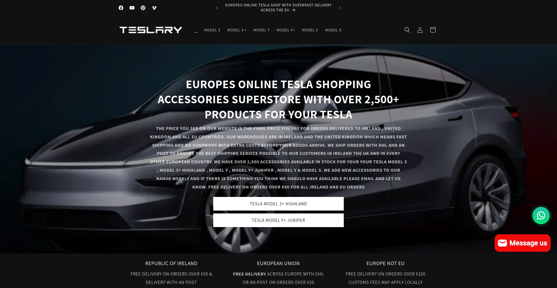 Europes Online Unofficial Tesla Shop for Everything Tesla, Based in Ireland. Tesla Model 3 , Y , S , X , Highland & Junipar Parts and Accessories with Same Day Shipping across t...