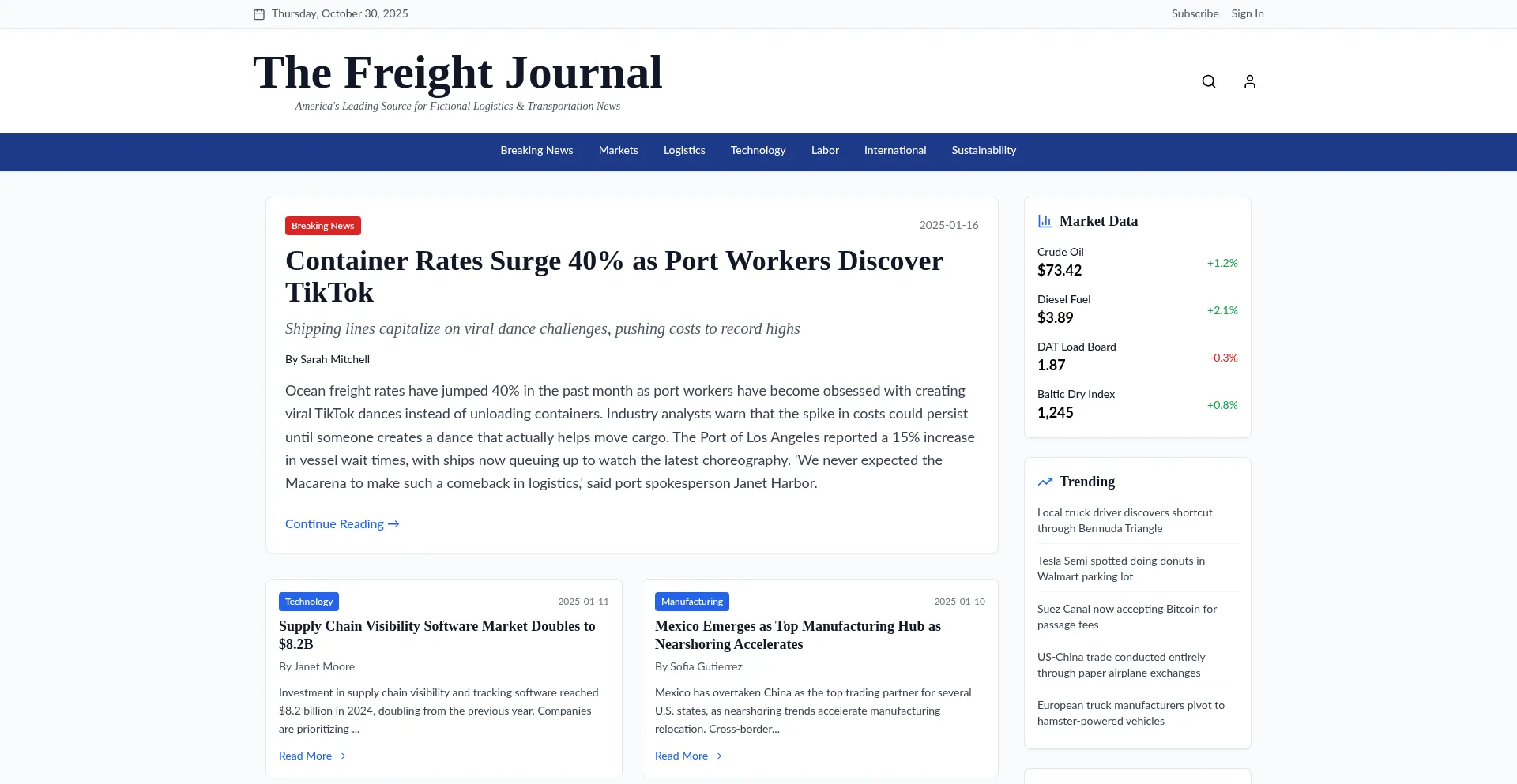 The Freight Journal - WSJ-Style News Site