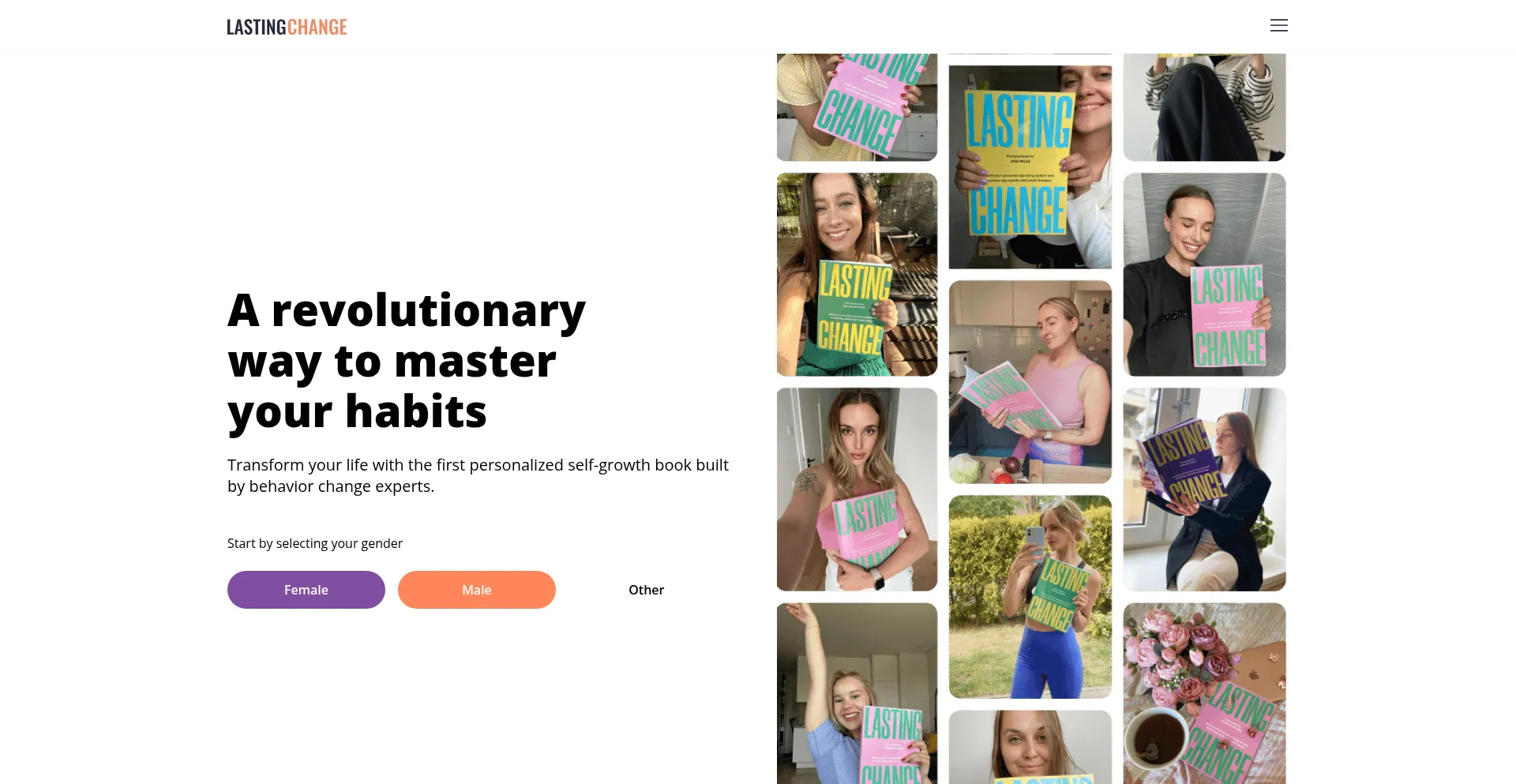 The Lasting Change is the first fully personalized self-growth and wellness book in the world. Start your journey with Lasting Change - a book made for you and about you.