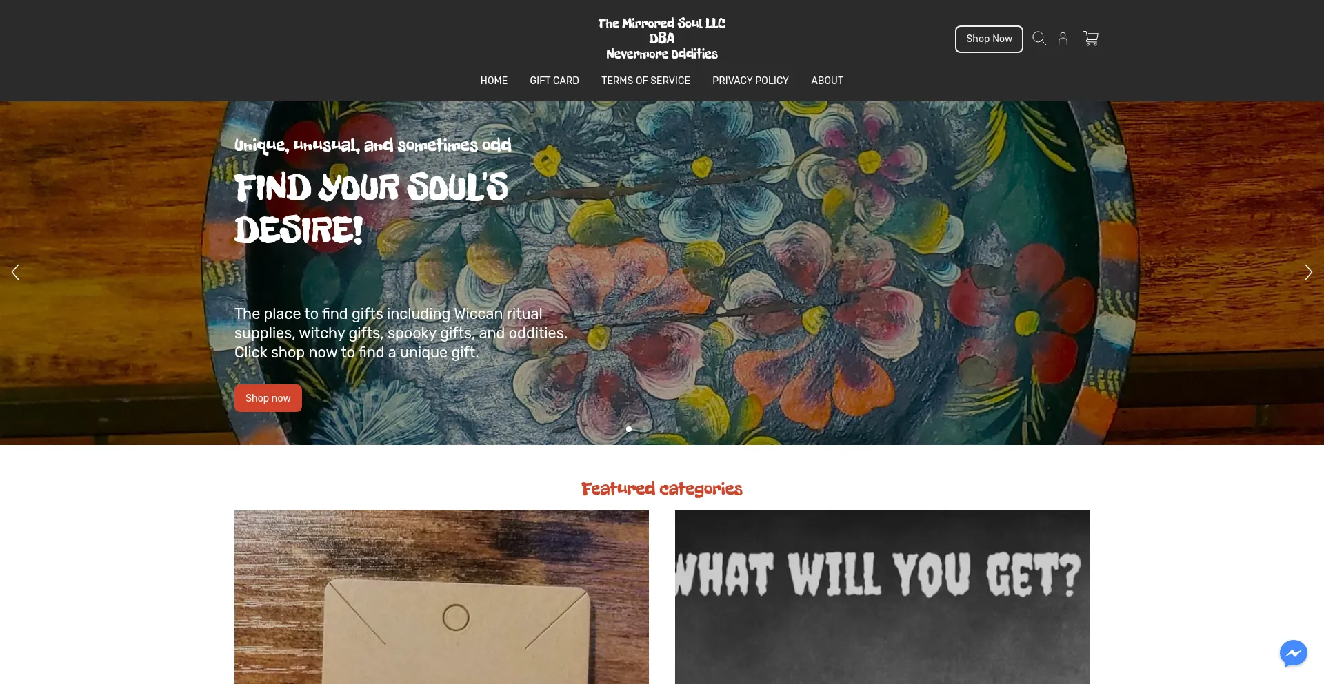Novelty retailer of Wiccan ritual supplies, witchy gifts, spooky gifts, and oddities.