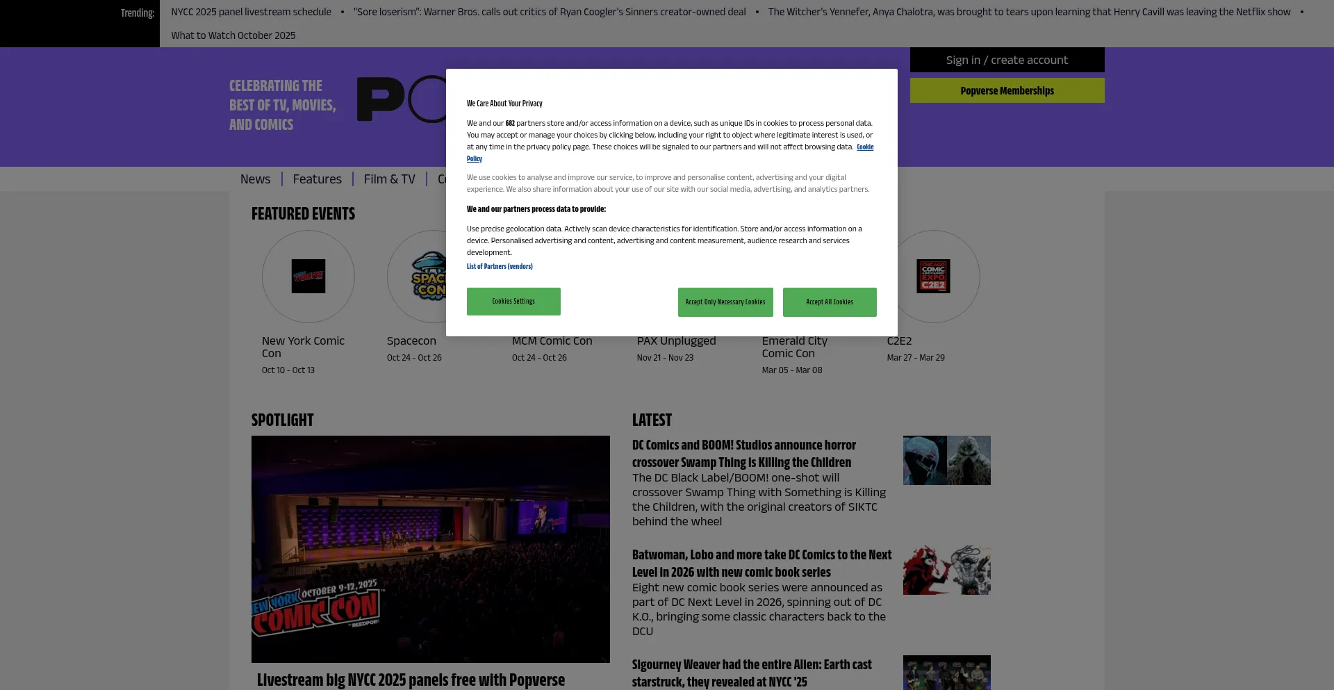 O site implementa mecanismos de consentimento de cookies em conformidade com regulamentações de privacidade como GDPR ou CCPA. Isso demonstra que thepopverse.com adere a padrões de proteção de dados e fornece aos usuários controle sobre práticas de coleta de dados pessoais.