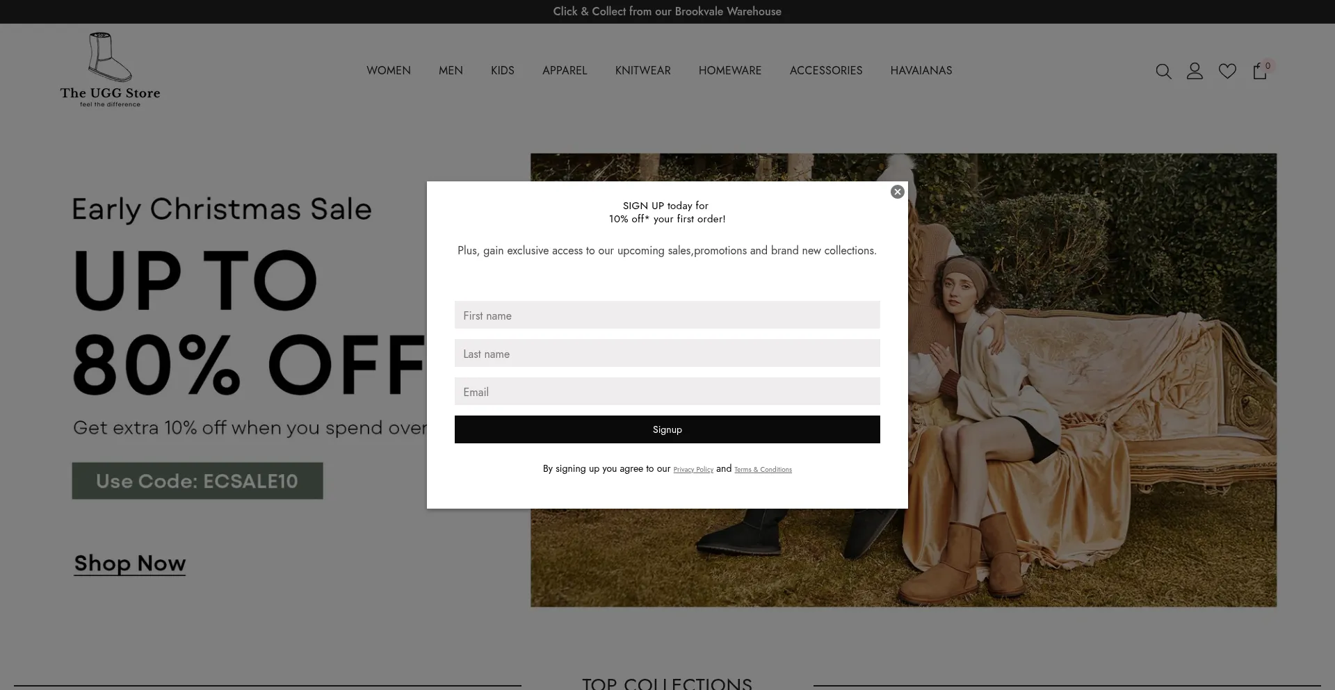 O site implementa formulários de coleta de dados solicitando informações pessoais incluindo nomes, endereços de e-mail, números de telefone ou outros detalhes sensíveis. Os usuários devem verificar a legitimidade de theuggstore.com.au e revisar políticas de privacidade antes de enviar dados pessoais.