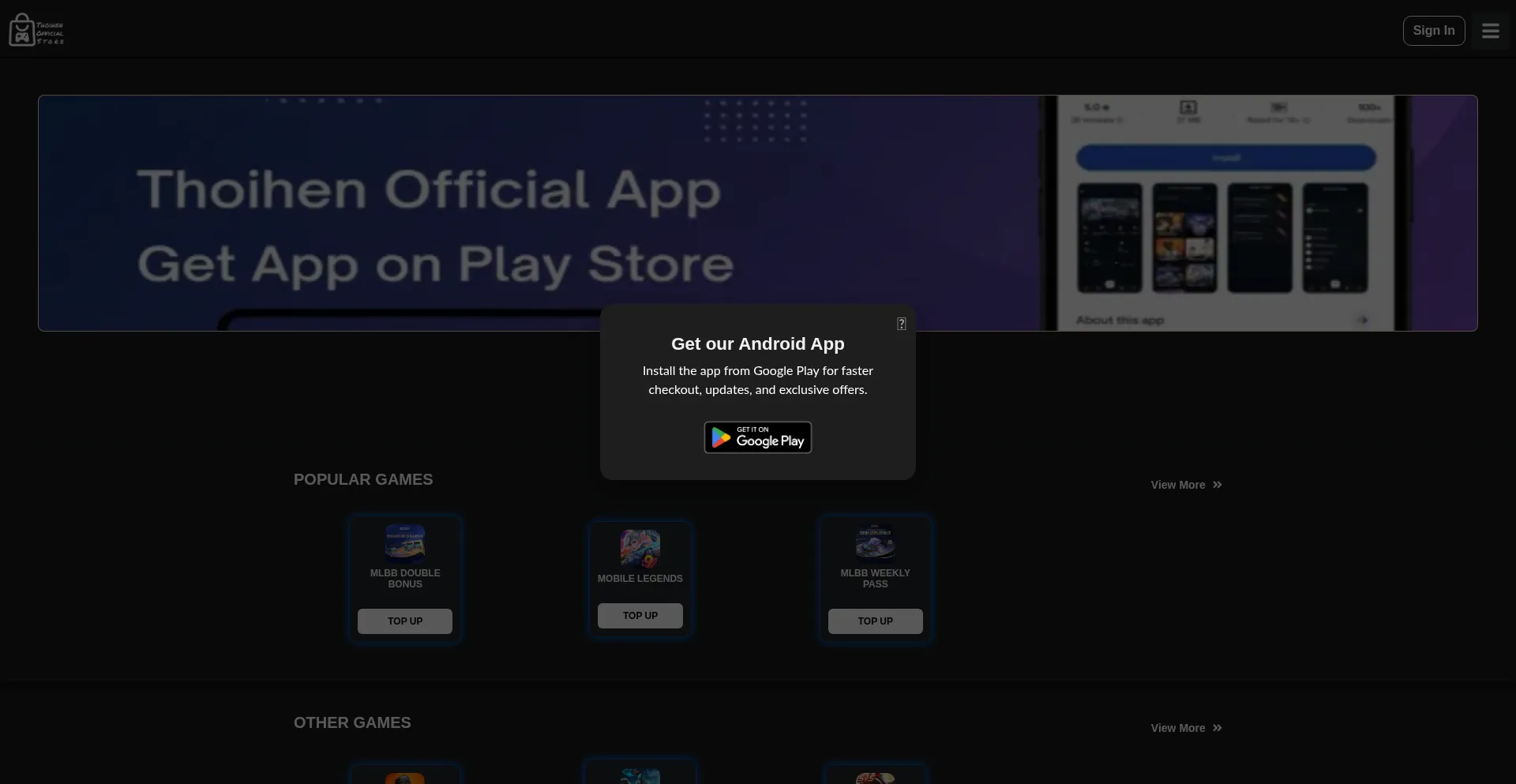 thoihenofficial.com oferece uma aplicação móvel para dispositivos Android, indicando presença de plataforma expandida além dos serviços baseados na web.