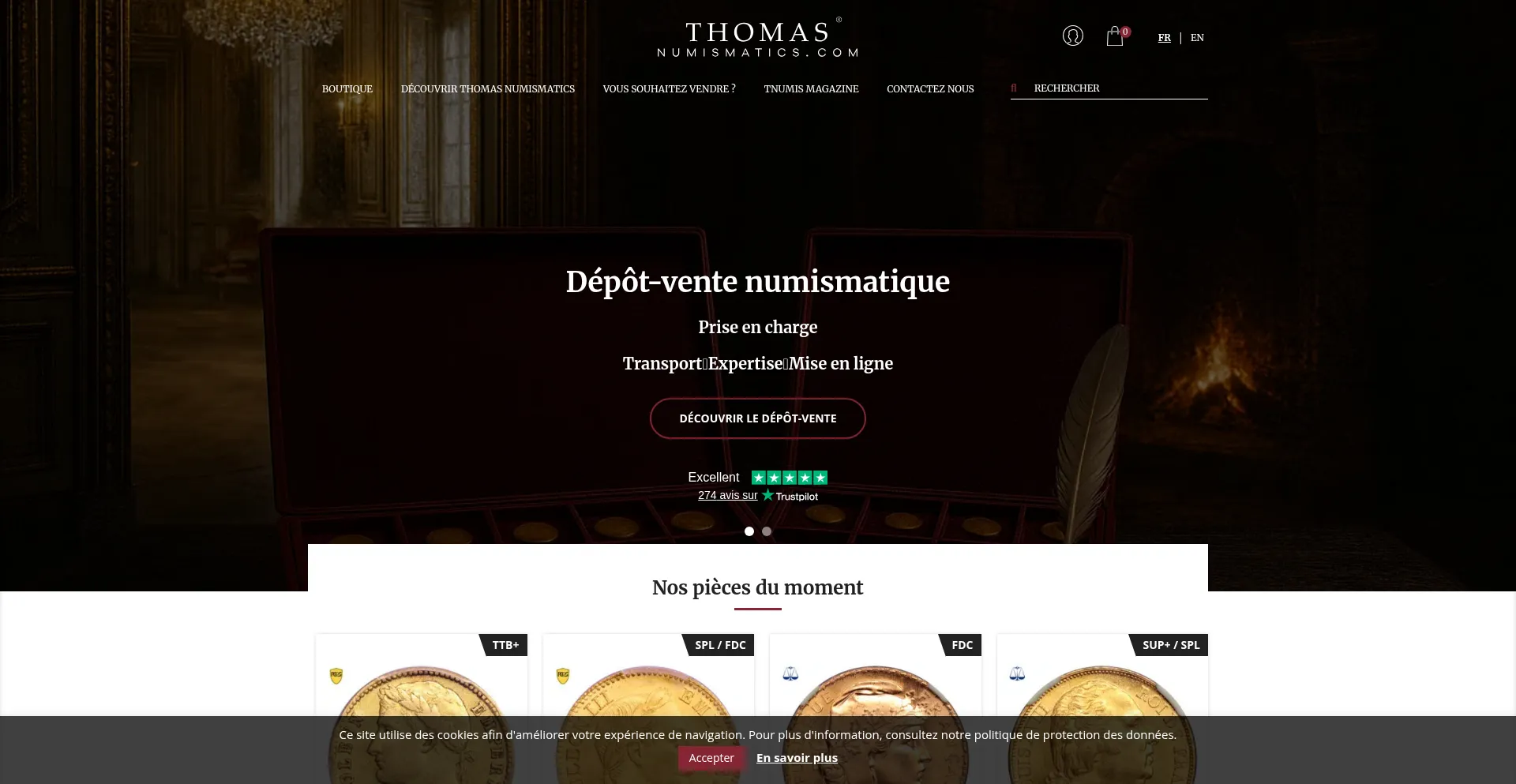 Boutique numismatique en ligne avec services et garanties Premium. Vivez l’expérience et la passion des collections Thomas Numismatics !