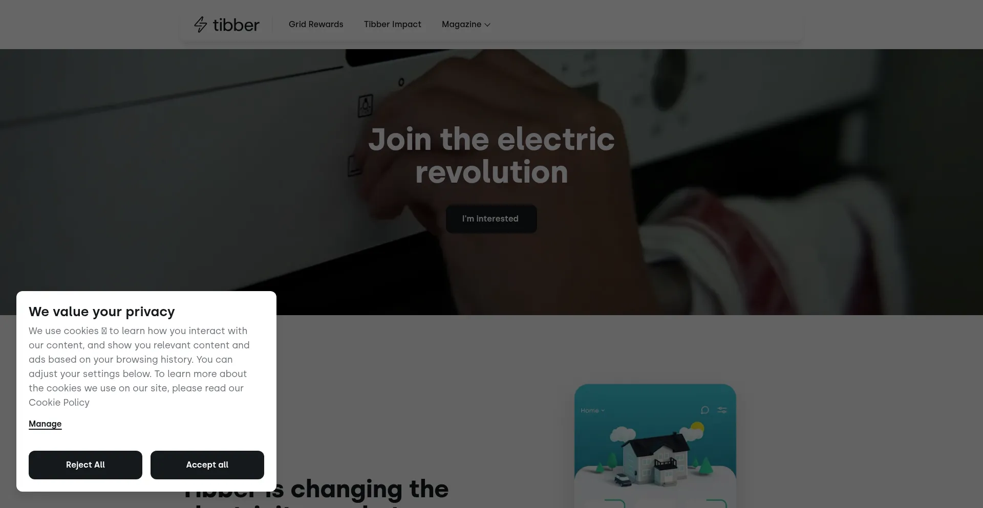 O site implementa mecanismos de consentimento de cookies em conformidade com regulamentações de privacidade como GDPR ou CCPA. Isso demonstra que tibber.com adere a padrões de proteção de dados e fornece aos usuários controle sobre práticas de coleta de dados pessoais.