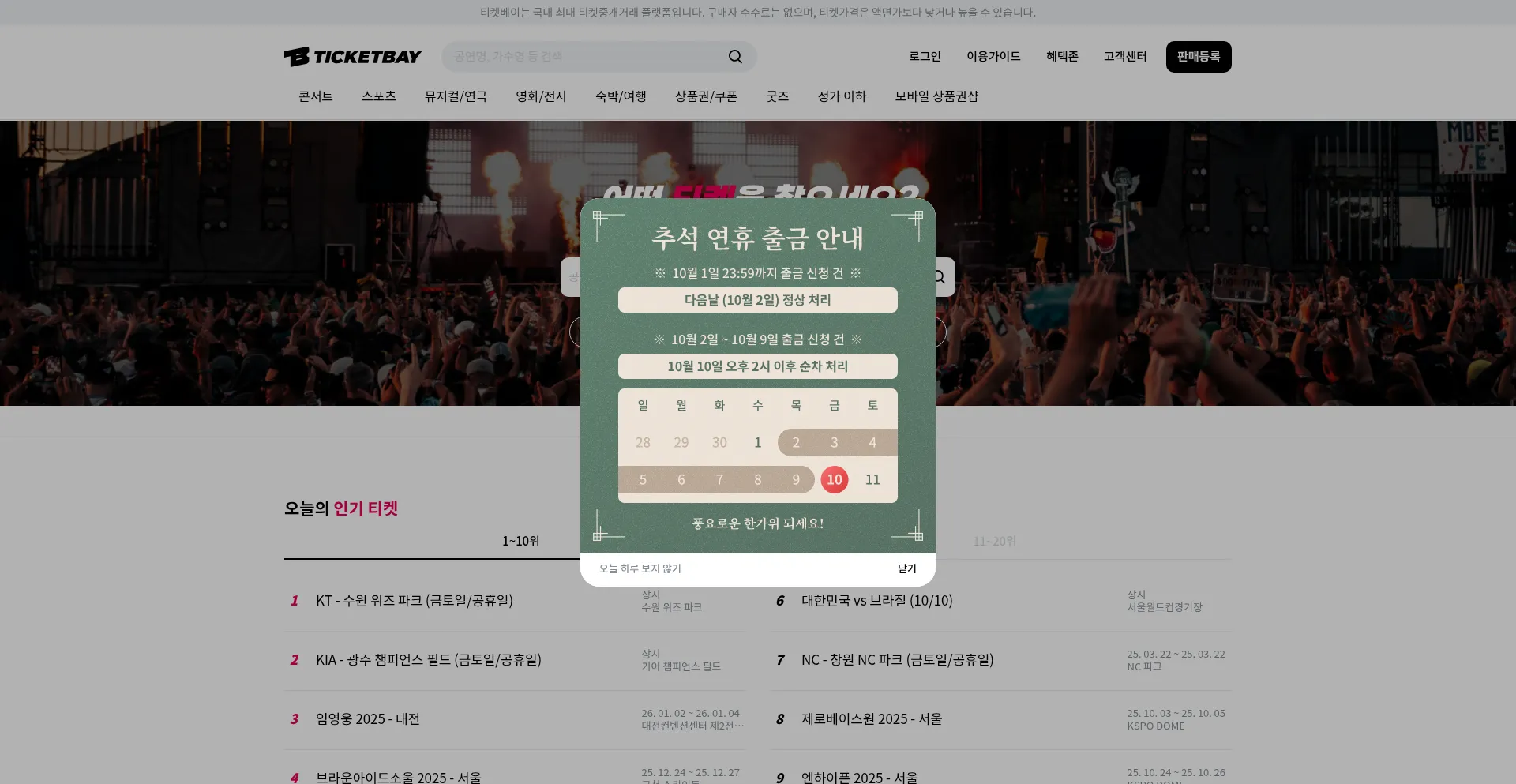 원하는 티켓은 기다림 없이 티켓베이에서 편하고 안전하게 구매하세요.