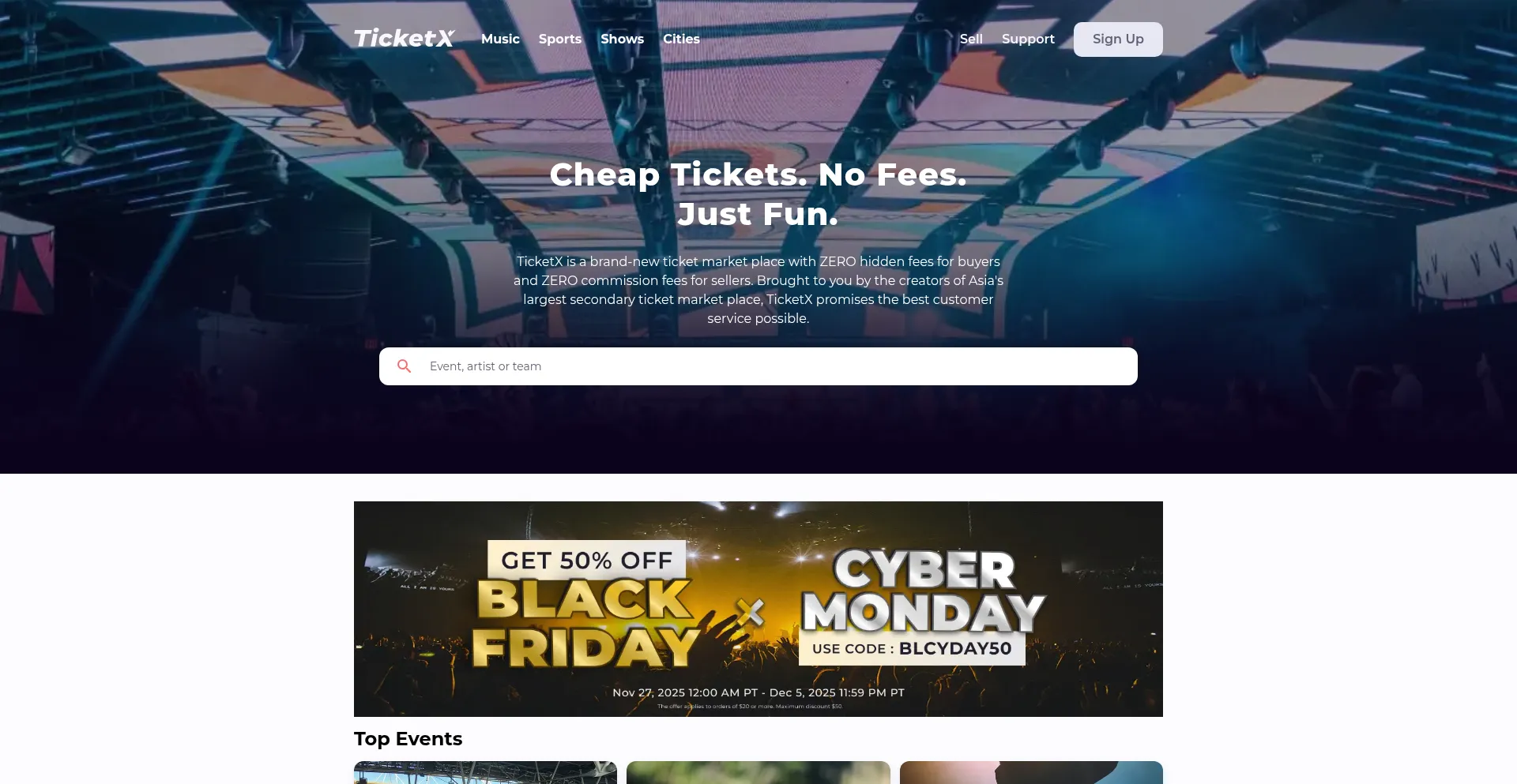 TicketX is the no-fee ticket marketplace for concerts, sports, and more. Buy cheap, verified tickets online and skip the hidden fees—every time.