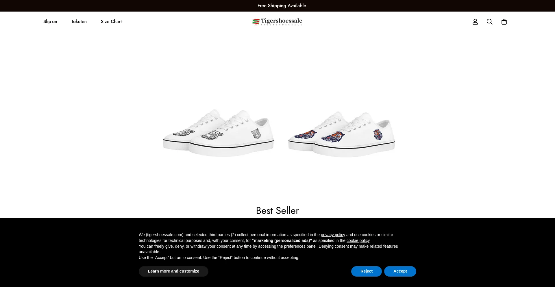 O site implementa mecanismos de consentimento de cookies em conformidade com regulamentações de privacidade como GDPR ou CCPA. Isso demonstra que tigershoessale.com adere a padrões de proteção de dados e fornece aos usuários controle sobre práticas de coleta de dados pessoais.