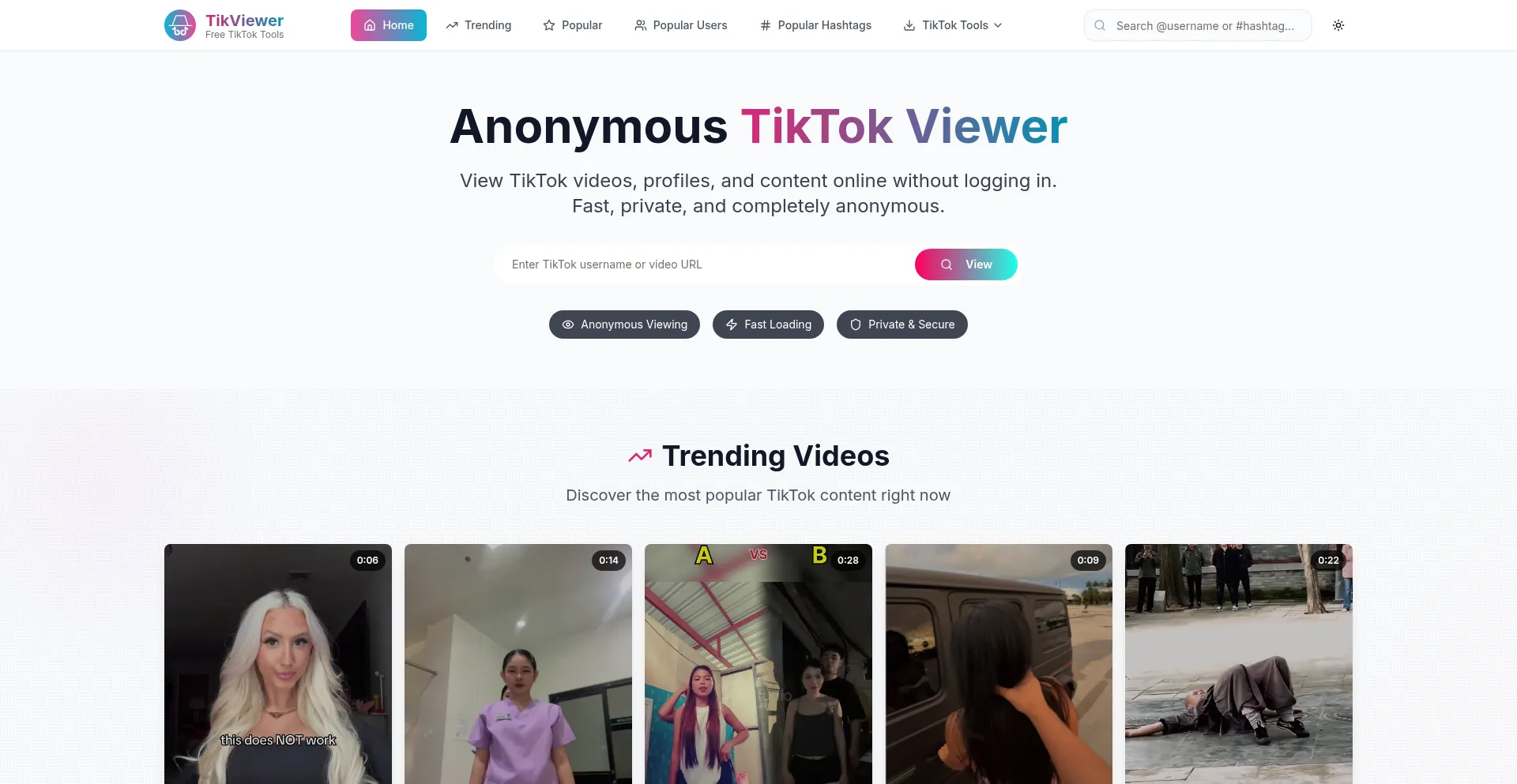 TikViewer is the best anonymous TikTok viewer. Watch TikTok videos online without an account. Private, fast, and secure TikTok video viewer.