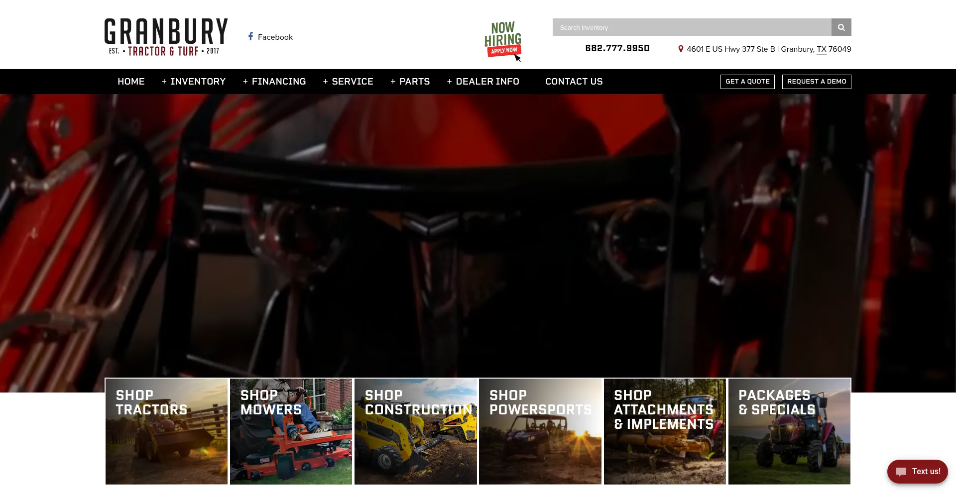 Granbury Tractor is a farm equipment store offering sales, financing, service, and more in Granbury, TX, near Fort Worth!