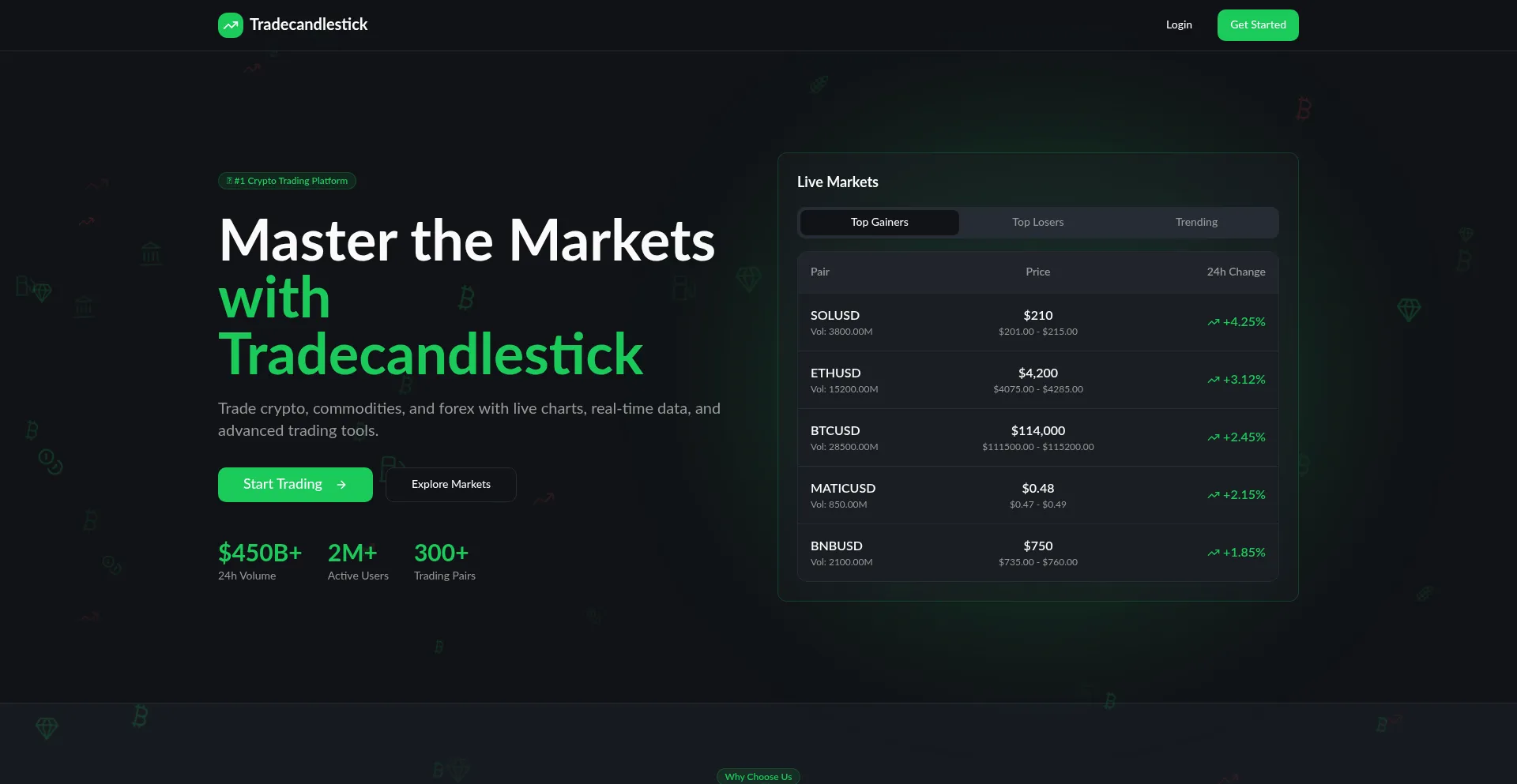 Trade crypto, commodities, forex, and digital assets on Tradecandlestick - Your professional trading platform with live charts and real-time market data