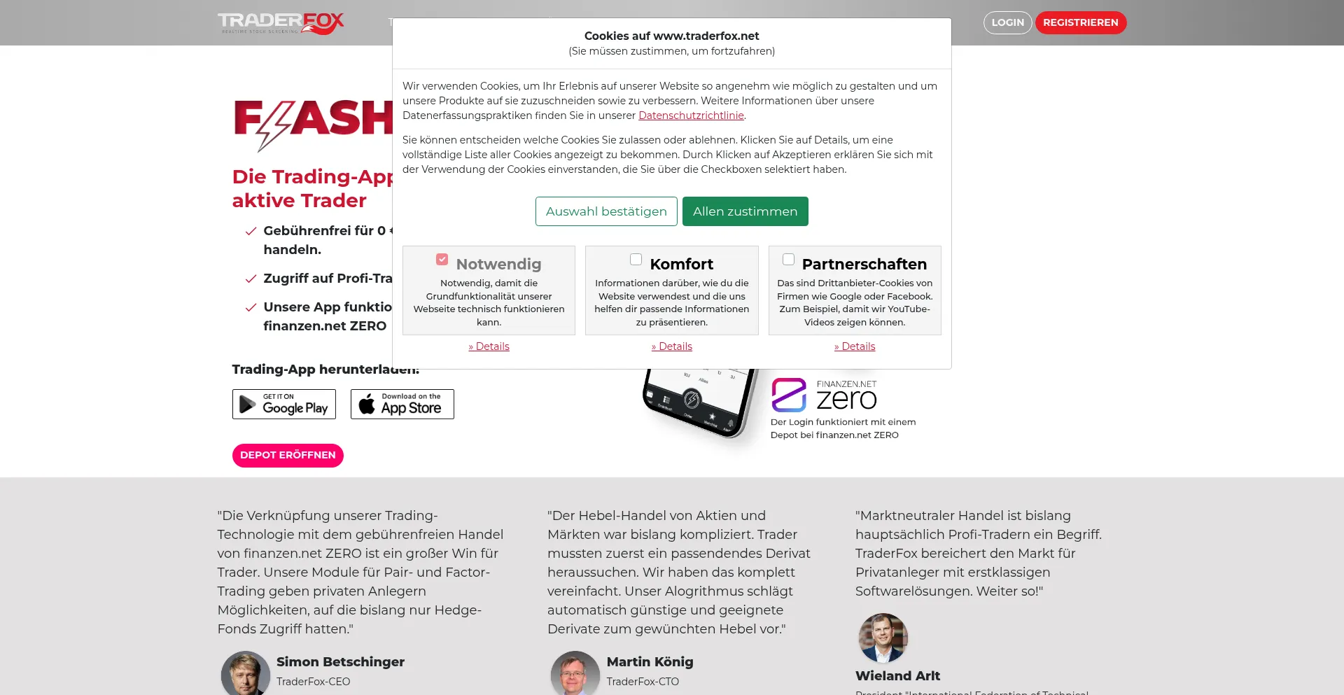TraderFox Flash - die Profi-Trading-App. Aktien und Derivate gebührenfrei kaufen. Der Login erfolgt mit dem Broker finanzen.net ZERO.