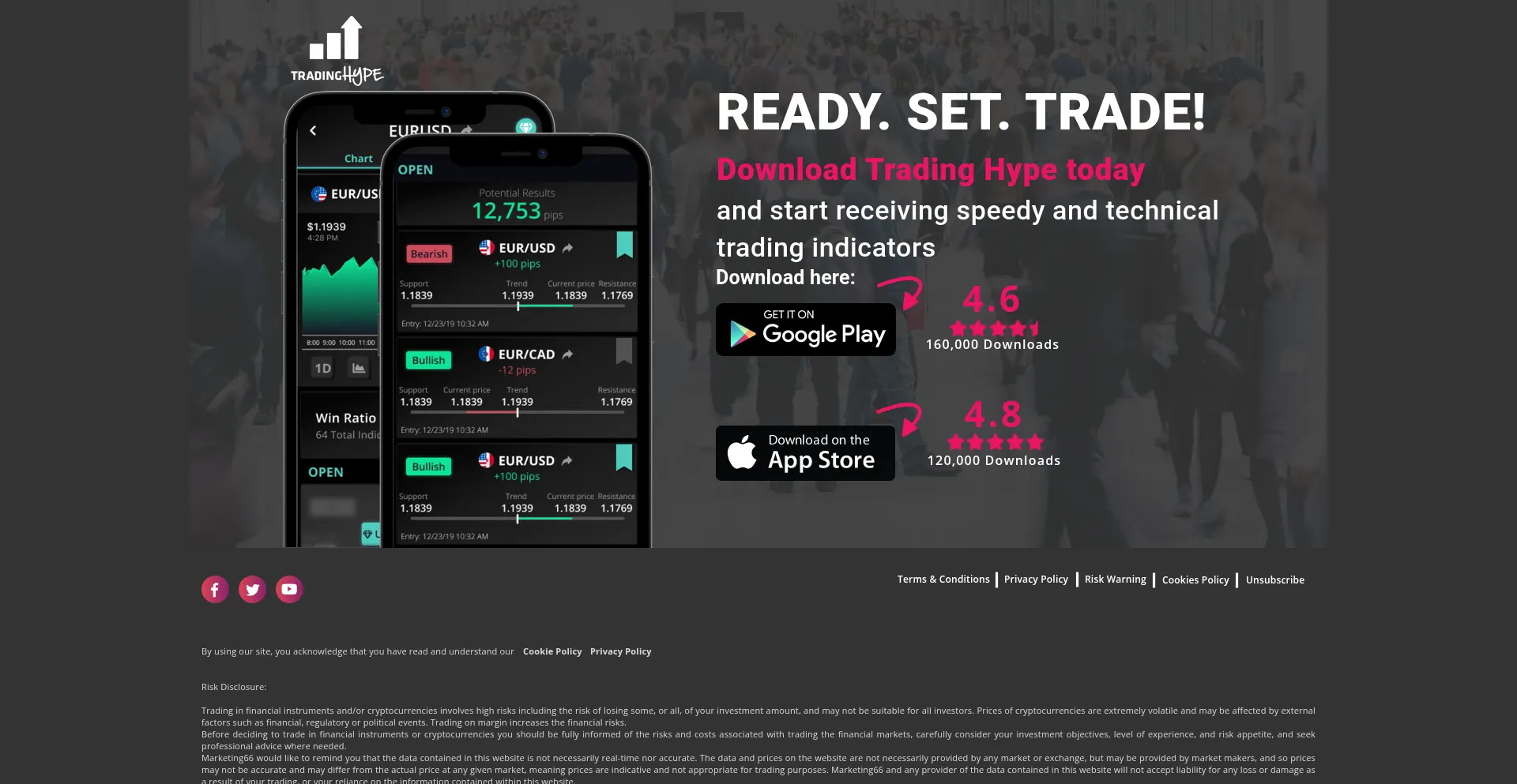 A presença de links de redes sociais no site indica que tradinghype.com mantém contas oficiais em redes sociais, o que é um sinal positivo de credibilidade e engajamento.