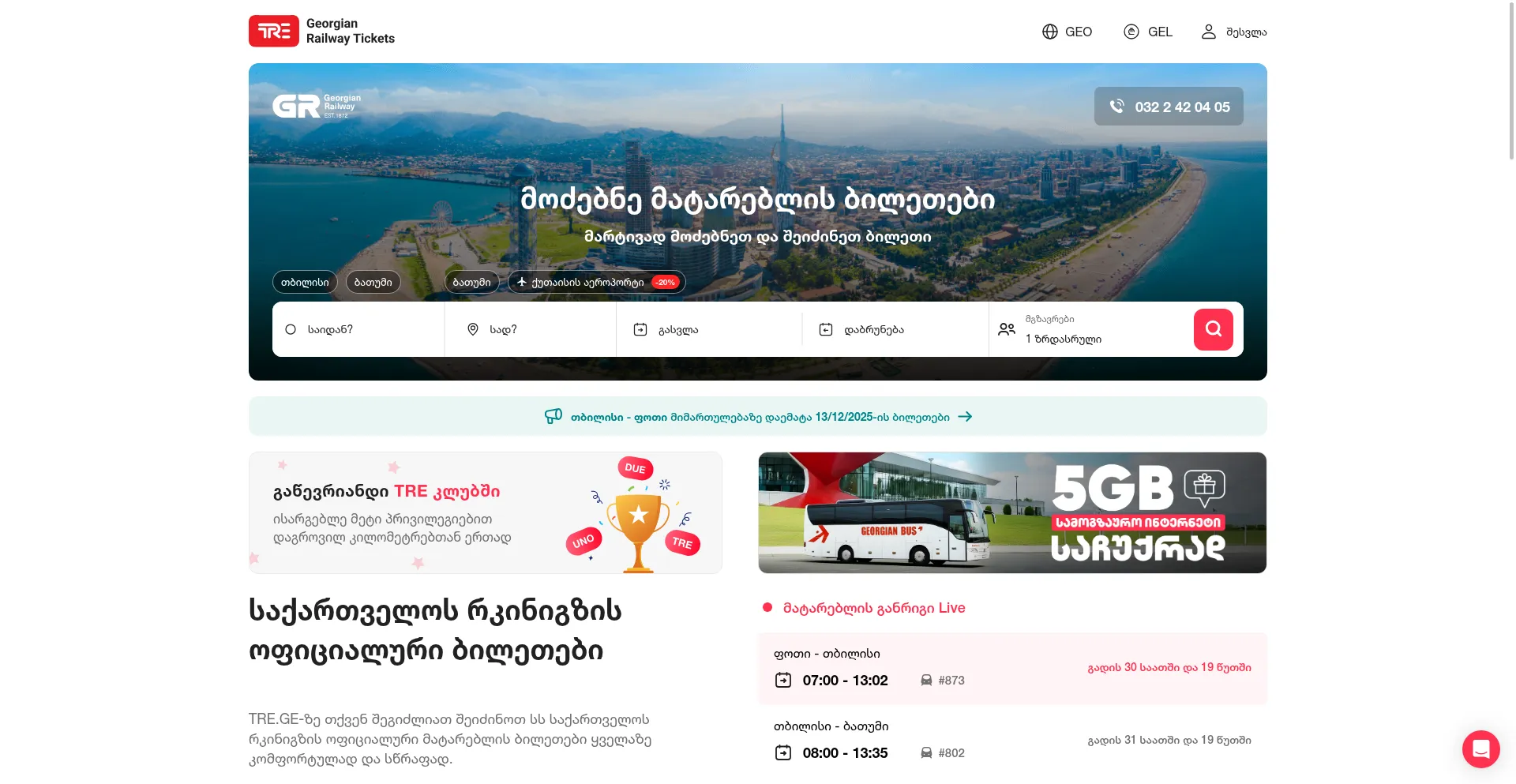 შეიძინე საქართველოს რკინიგზის ოფიციალური ბილეთები, აირჩიე სასურ�...